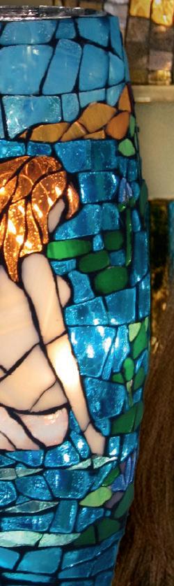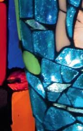 Also adding her brand of chutzpah is Danielle Fernandez who took o on a courageous creativity journey and found her true passion and calling in mainly mosaic. Her work of art has no boundaries as she goes at it hammer and tongs, to create things of beauty. A glimpse into her stained glass and tiled world, is food for the creative soul.