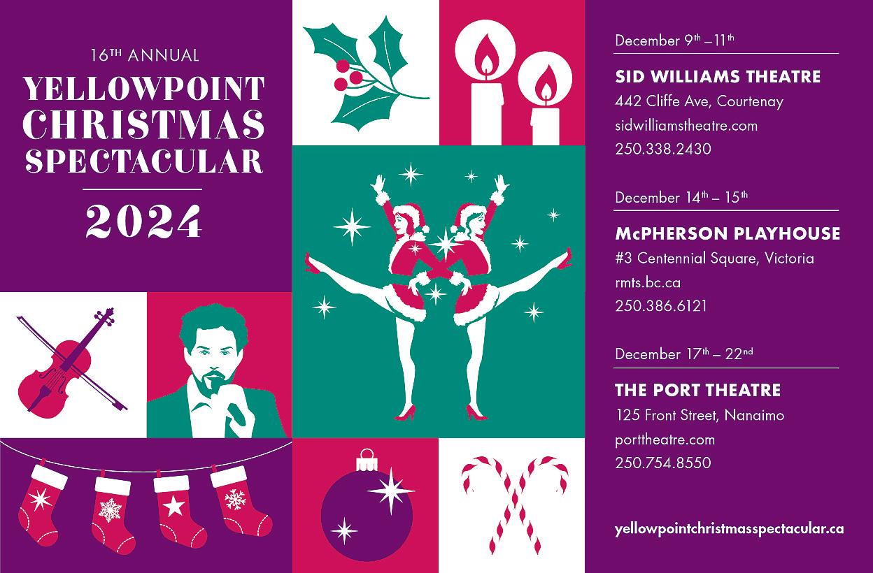 Vancouver Island. Tickets went on sale on August 7th and have been selling quickly at all three venues. The season opens in Courtenay at the Sid Williams Theatre (Dec 9-11) before it heads to Victoria to the McPherson Playhouse (Dec 14 & 15) and from there to Nanaimo at The Port Theatre (Dec 17-22). Visit yellowpointchristmasspectacular.ca for ticket links and further information.