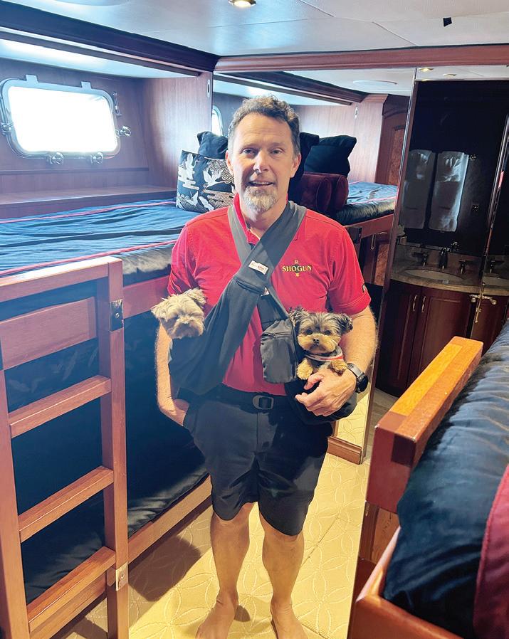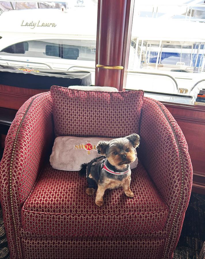 Yet what truly sets Shogun apart isn’t just her luxury, it’s her crew. At the helm is Captain Trevor, a seasoned seafarer known for his calm leadership and welcoming presence. By his side, quite literally at his heels, is his loyal first mate: London, a teacup Yorkshire terrier with the heart of a lion.