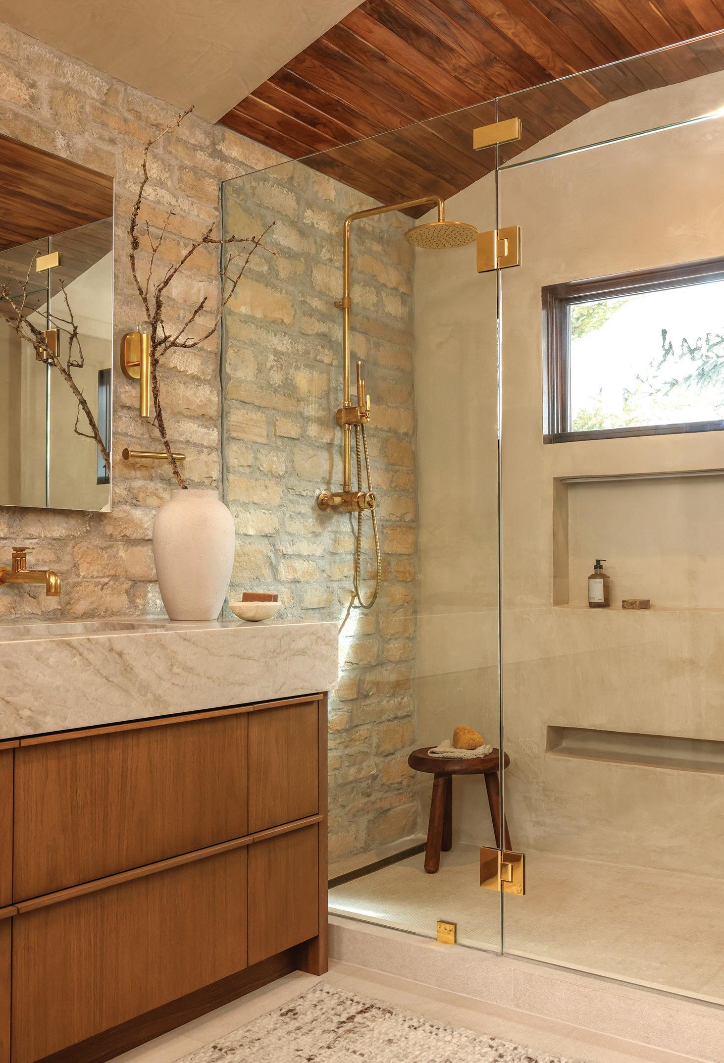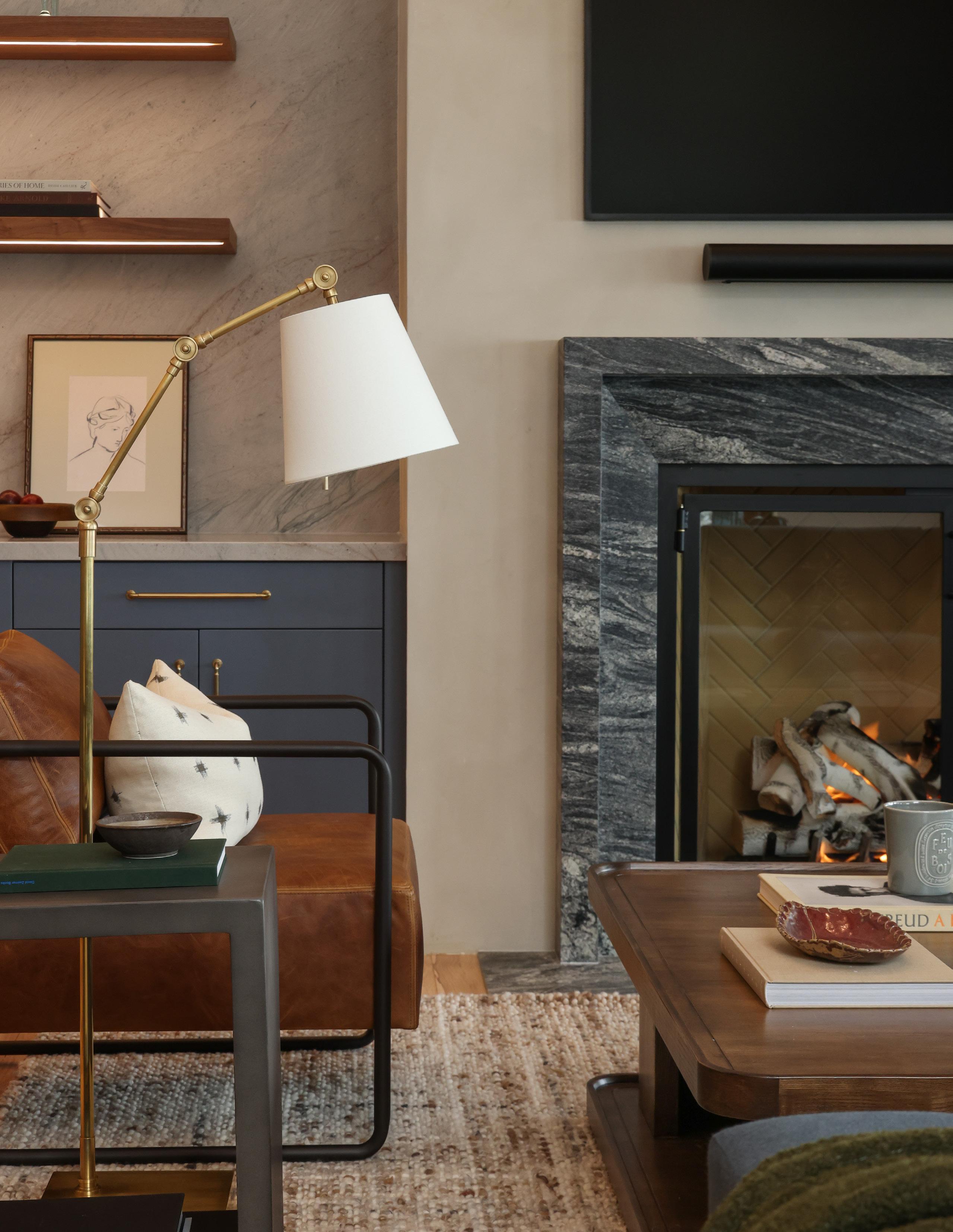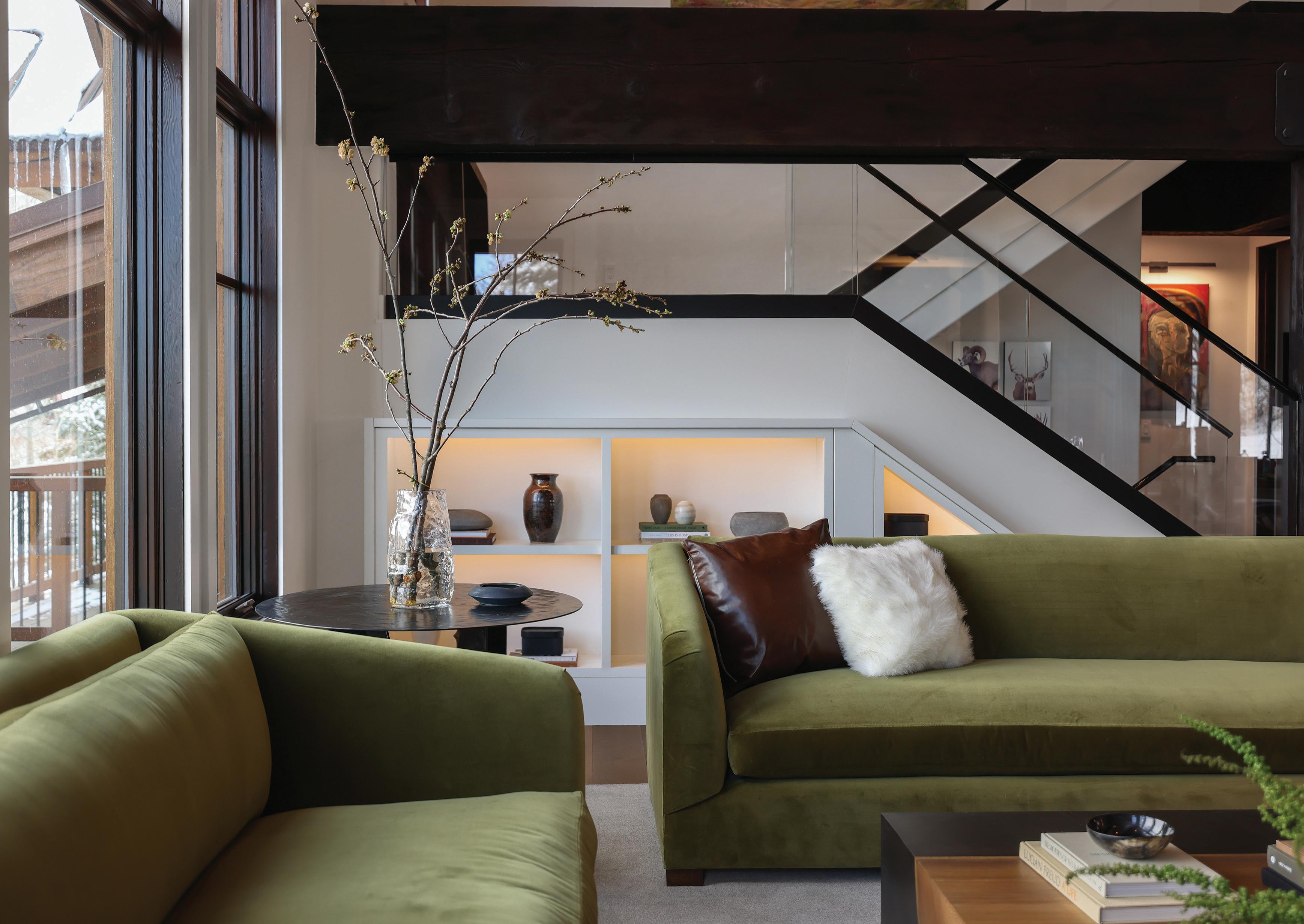 At Barclay Butera Interior Design, we are seeing a trend towards modern and minimalist style for our mountain projects! Often, our client’s mountain projects are second homes, and we are very conscious to ensure a clutterfree, serene space for our clients to relax and unwind. For this home, we chose organic materials such as stone, marble, and rich wood finishes as the base from which to layer. Glass walls and windows allow the fresh mountain light to filter through. Moss green velvet sofas softened the space and added depth and warmth. Dove white walls, contemporary light fixtures and art reminiscent of the region round out the mix. So, whether it is a mountain chalet, charming cottage, or slick city condo, explore the possibilities of your own unfettered, transitional home at Barclay Butera Interior Design.