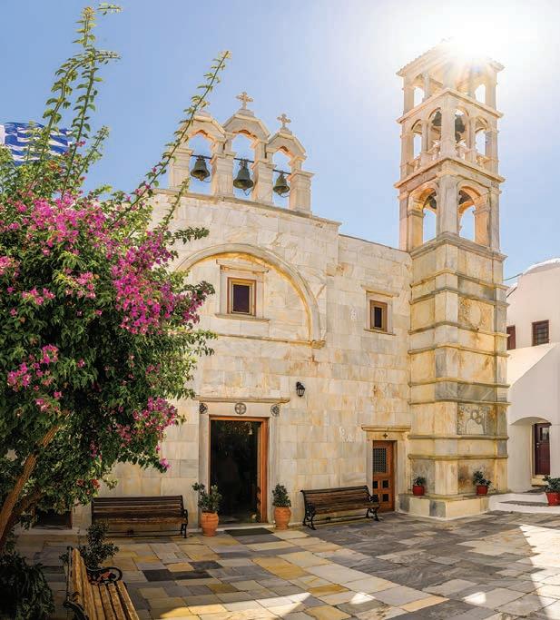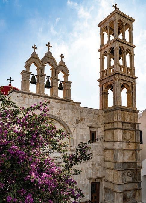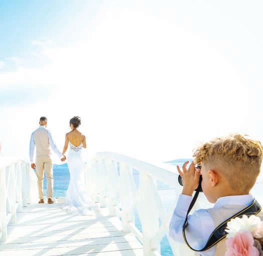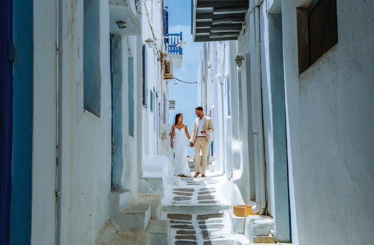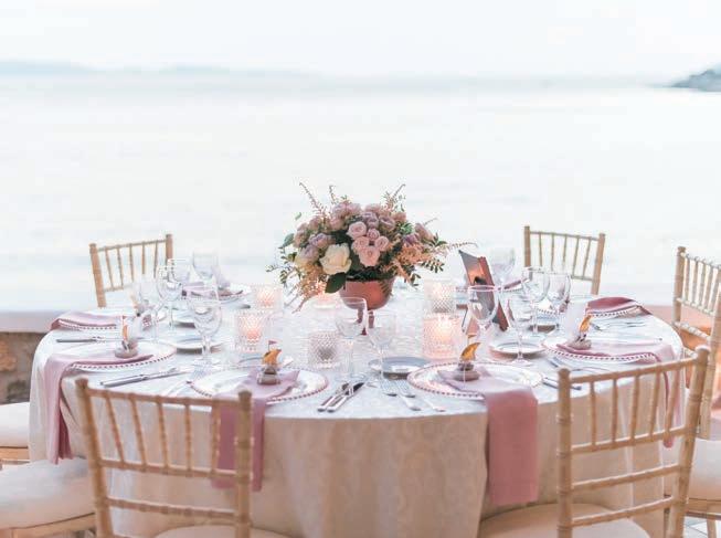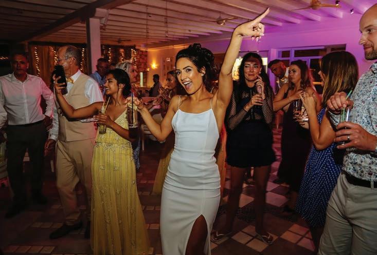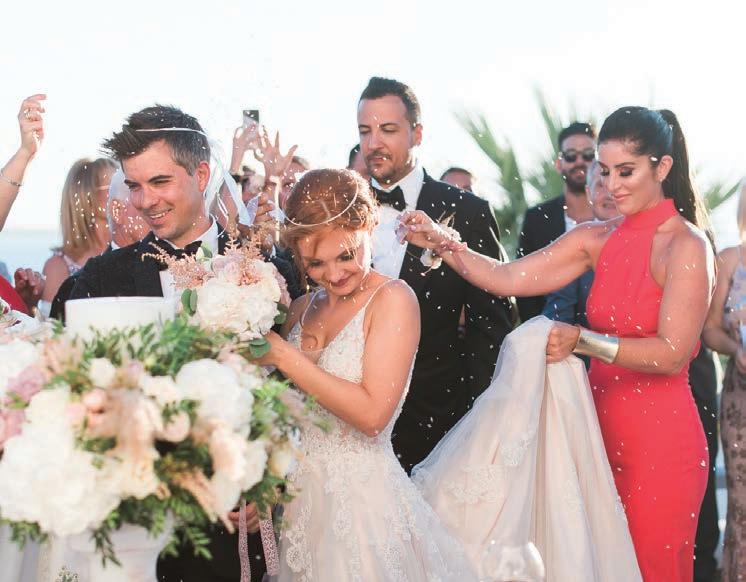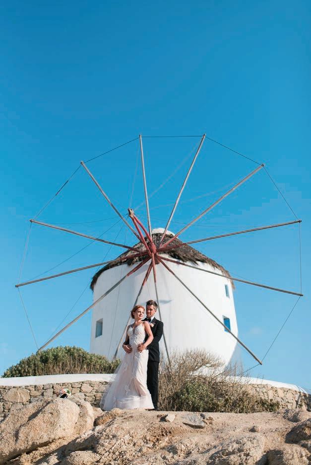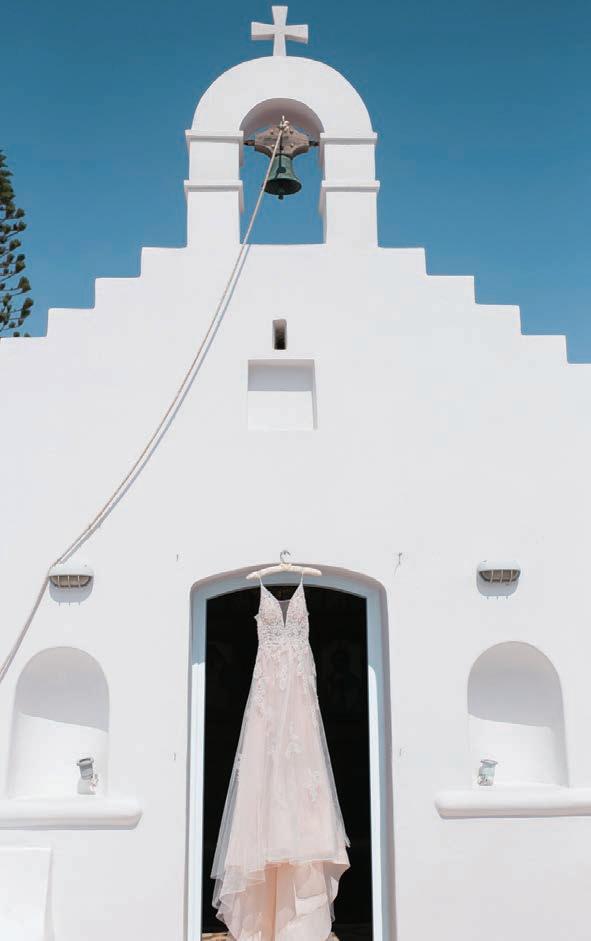 “Our venues are popular as they o er full sea views, allowing all guests to experience the breathtaking sunset rsthand,” says Popi Giannaraki from Saint John Hotel. For this reason, Giannaraki adds, typically couples will request their wedding to align with the sunset, allowing a refraction of light against the ivory buildings and a golden hue encompassing the newlyweds.