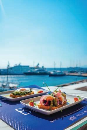 Kyma’s stylish and warm atmosphere, with unobstructed views of the sea, invites guests to enjoy creative dishes with Mediterranean in uences, paired with a curated list of Greek and international wines and cocktails. Catering to every taste, gluten-free and vegetarian dishes are available, as well as locally sourced delicacies from the land and sea.