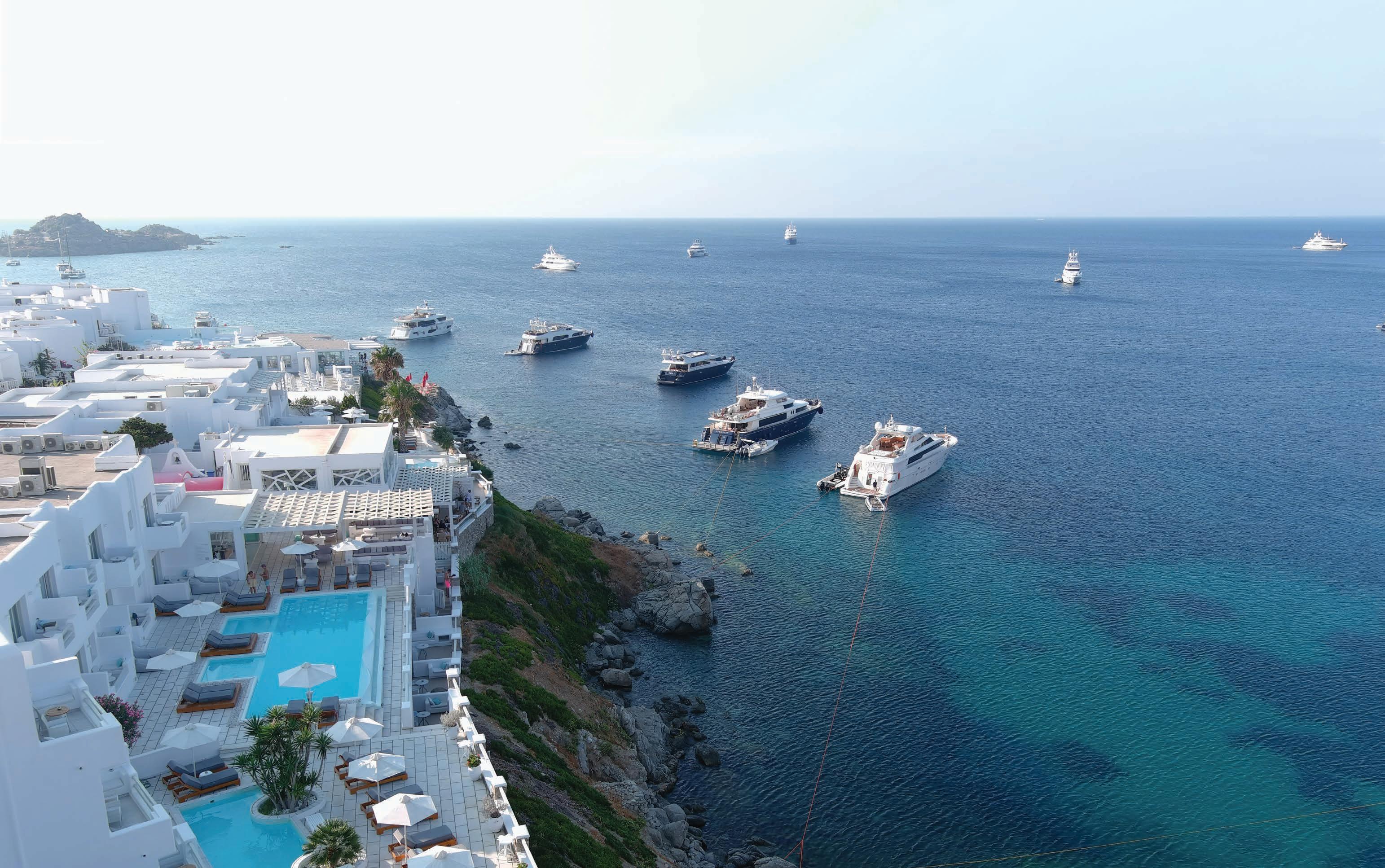 Wake up at the five-star Nissaki Boutique Hotel and step out to a private white washed balcony above Psarou Beach, where guests can bask under the golden touch of the Mykonian sun.
