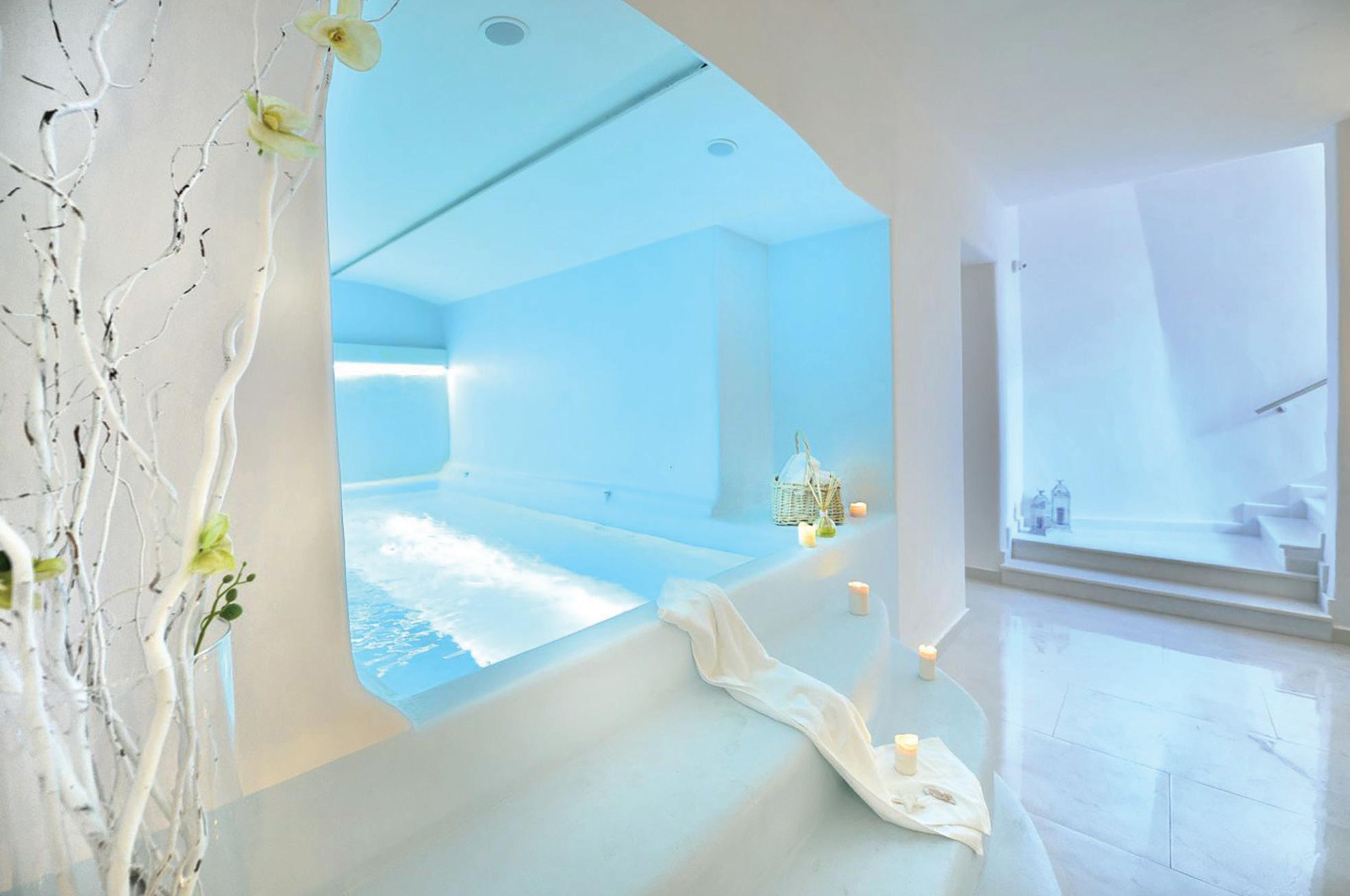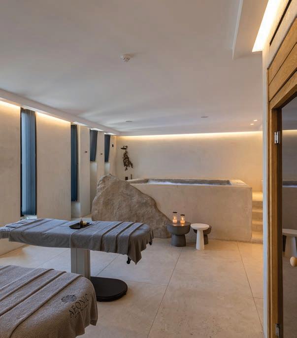 This award-winning spa is as famous for its restorative treatments as it is for its location on the rooftop of Aeonic Suites & Spa. With sweeping views of the Aegean Sea and timeless decor, the spa is a haven for those seeking to leave the bustle of the world behind. e sta of experienced and educated therapists put special emphasis on personalization, helping visitors choose a treatment package customized for their needs.