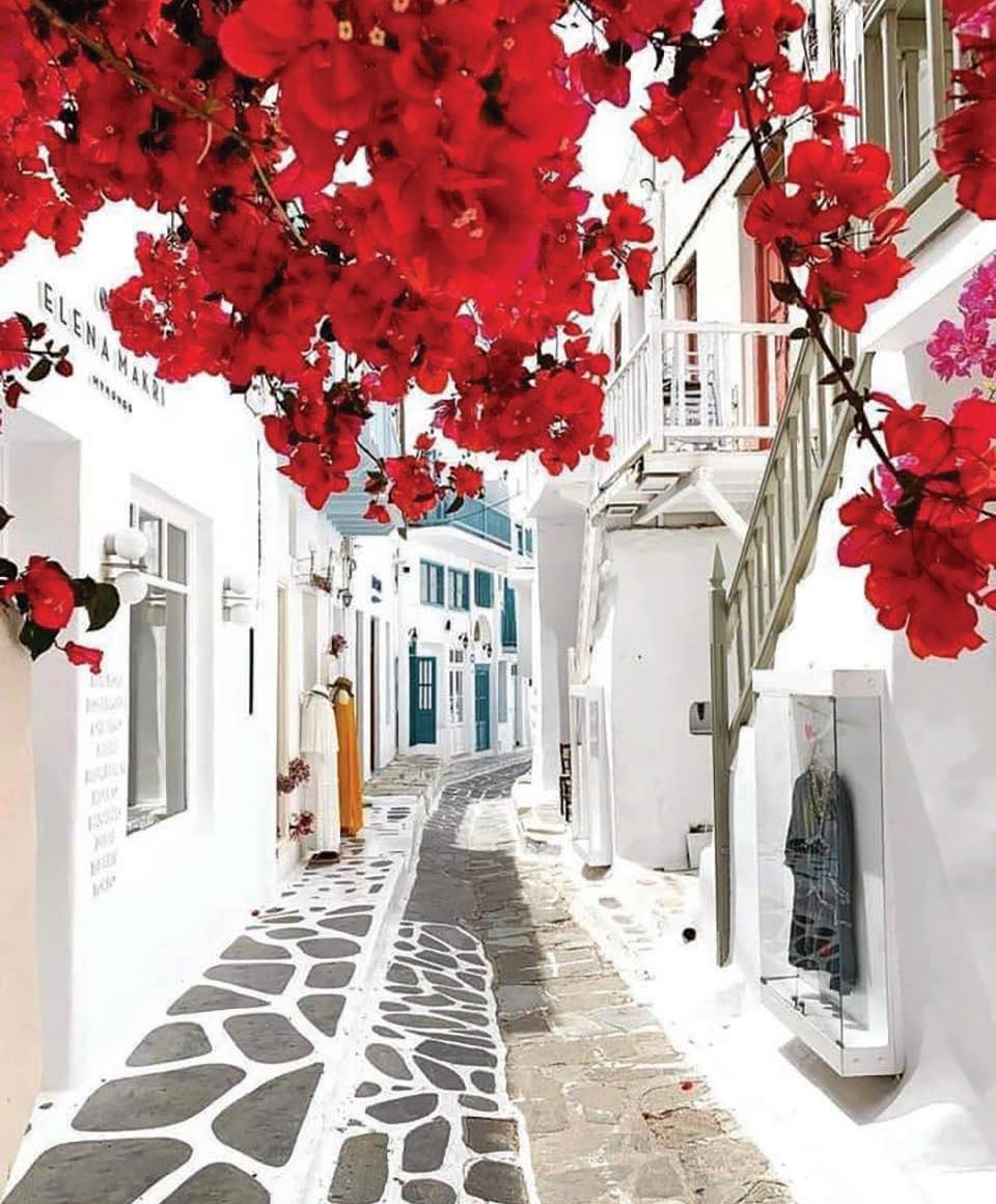 White and blue houses (and green and red doors and shutters) are the required paint color in Mykonos.