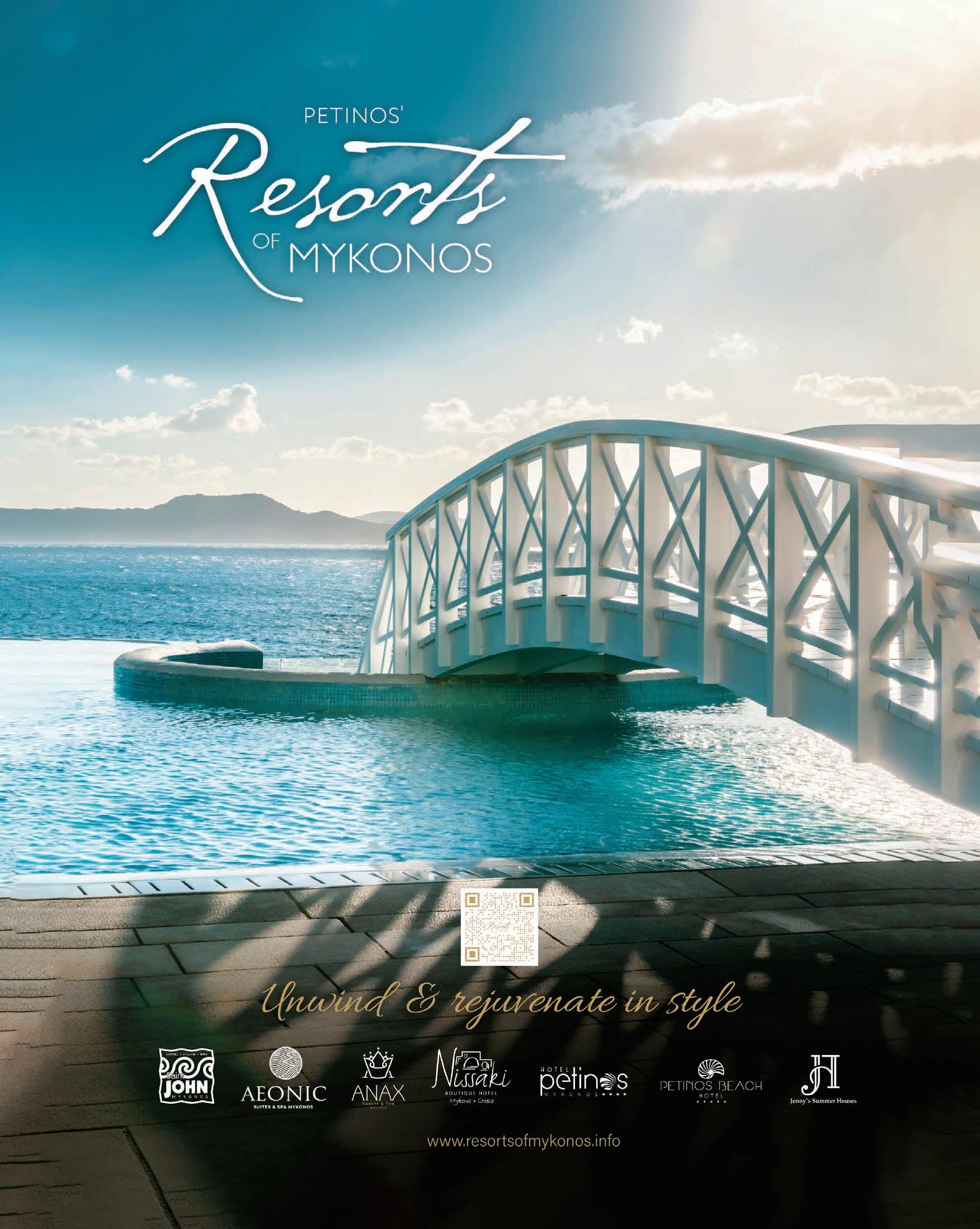 Petinos’ Resorts collection of seven luxury properties each o er a unique experience, deeply rooted in the rich culture and breathtaking landscape of the region. We chose to call our magazine “Locale” to signify the blend of locality and heritage that de nes Mykonos, a place renowned as a cosmopolitan destination, attracting tourism enthusiasts, luxury travelers, and high spenders from around the world. Despite its modern allure, we strive to honor and preserve the island’s rich heritage and local traditions. Locale embodies the spirit of old Mykonian ways, beliefs, and lifestyle choices. It represents a commitment to respecting and maintaining the practices and values that our ancestors established, which have contributed to Mykonos’ current status as a beloved holiday destination. We aim to bridge the past with the present, ensuring that the millions of travelers who visit this small rock in the Aegean appreciate the island’s authentic charm and historical signi cance.