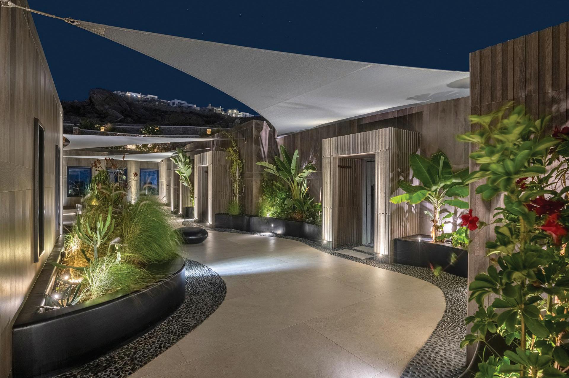 Meaning “breath” in Greek, Anasa Spa is a place of beauty, revival and calm. A full-service spa, with a hair salon, nail cabin for manicures and pedicures, and a hammam and sauna, Anasa is a space in which to slow down, unwind and just… breathe. e environment alone will help, featuring amazing sunset views of the cobalt Aegean Sea, with Delos Island as a backdrop.