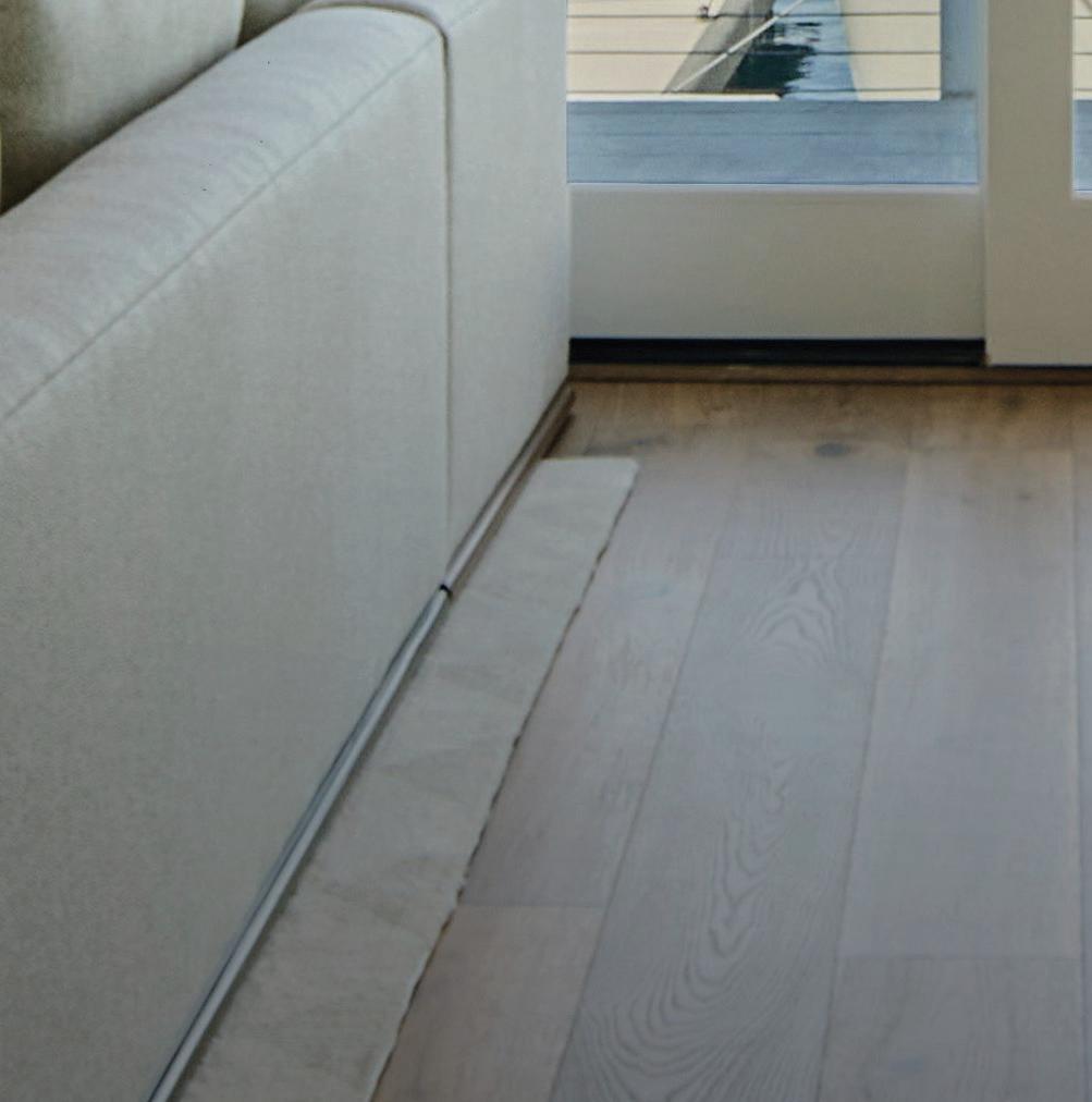 “This staircase design is punctuated with a simple massing of steel for the stair, edited to maintain a bold yet sleek silhouette which is juxtaposed with a colorful layered custom wallpaper,” said Lisa McDennon of Lisa McDennon Designs. “The paper concept was developed as a collaborative concept between myself, the client and local textile designer Diana Garreau. We wanted to create a graffiti wall that looked like it also had layers of paint and torn wallpaper underneath.”