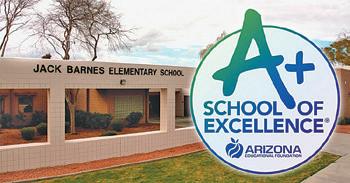 Jack Barnes Elementary School in Queen Creek has been given an A+ School of Excellence Award by the Arizona Education Foundation, one of only 36 schools in the state to receive the designation and the only one in Queen Creek.