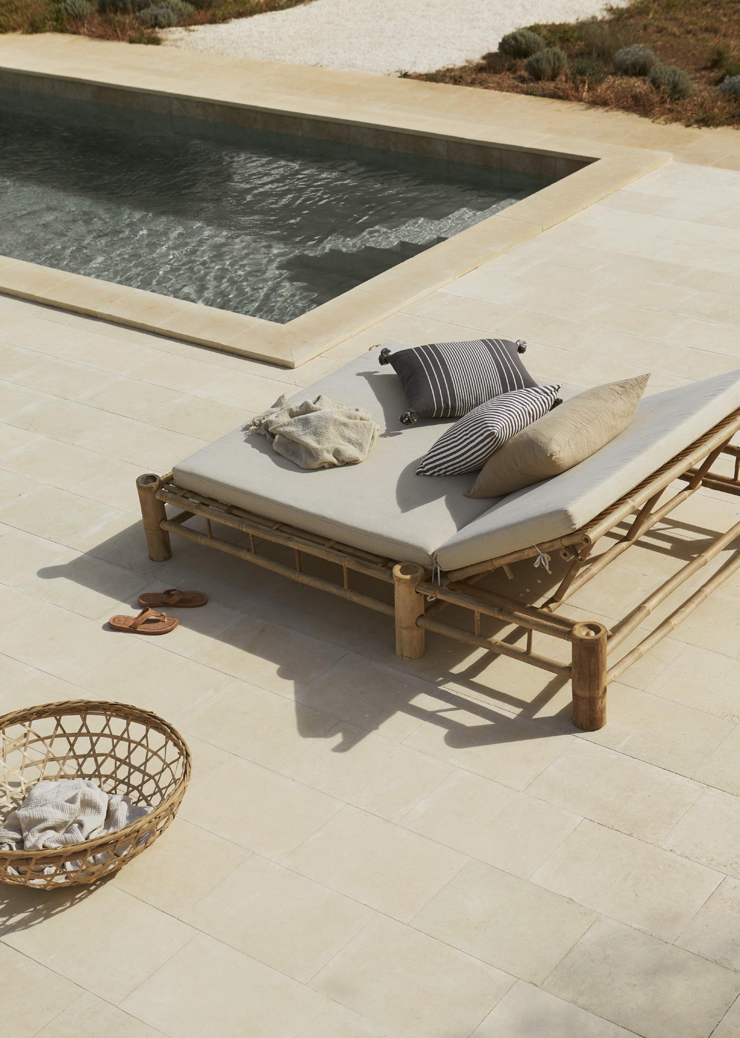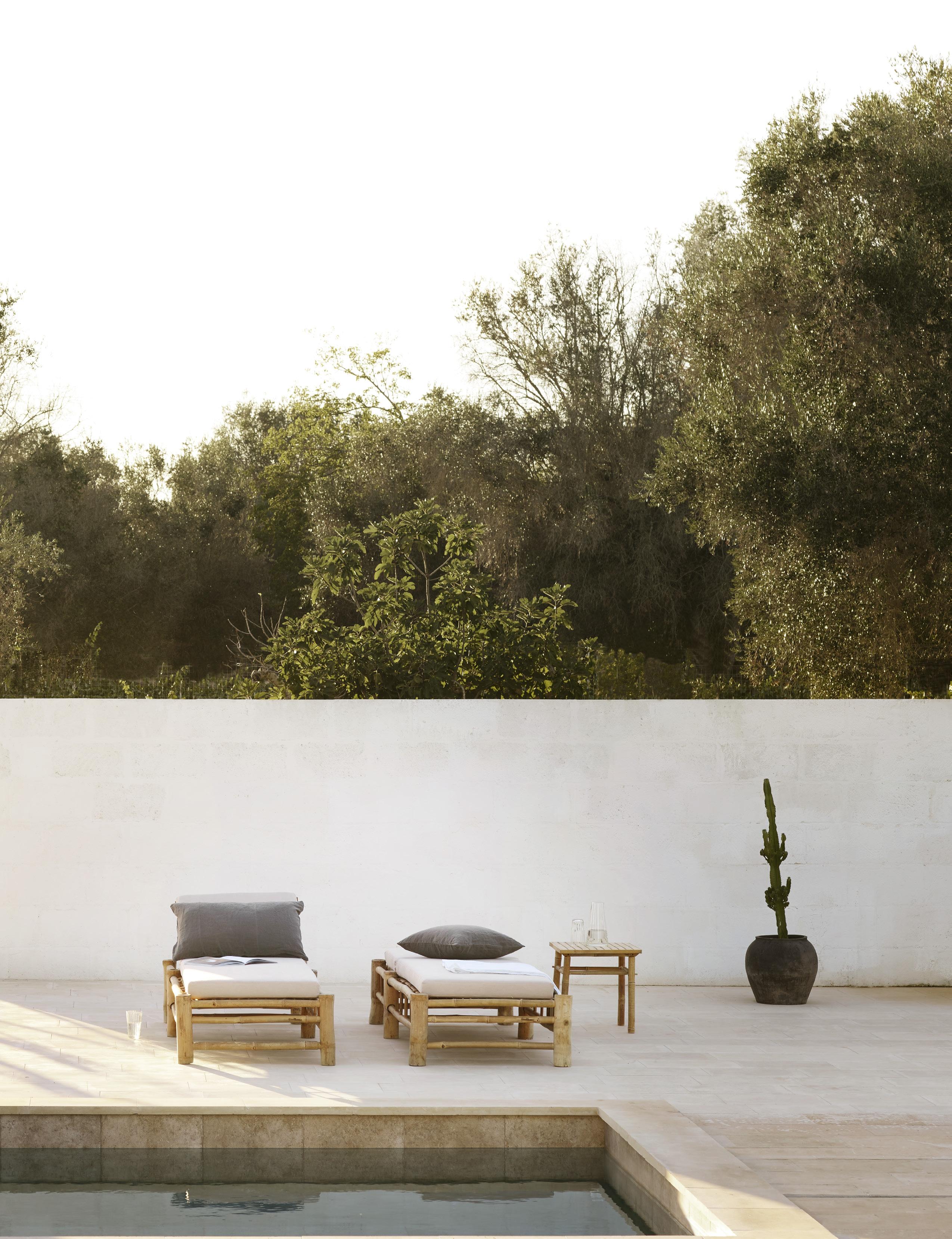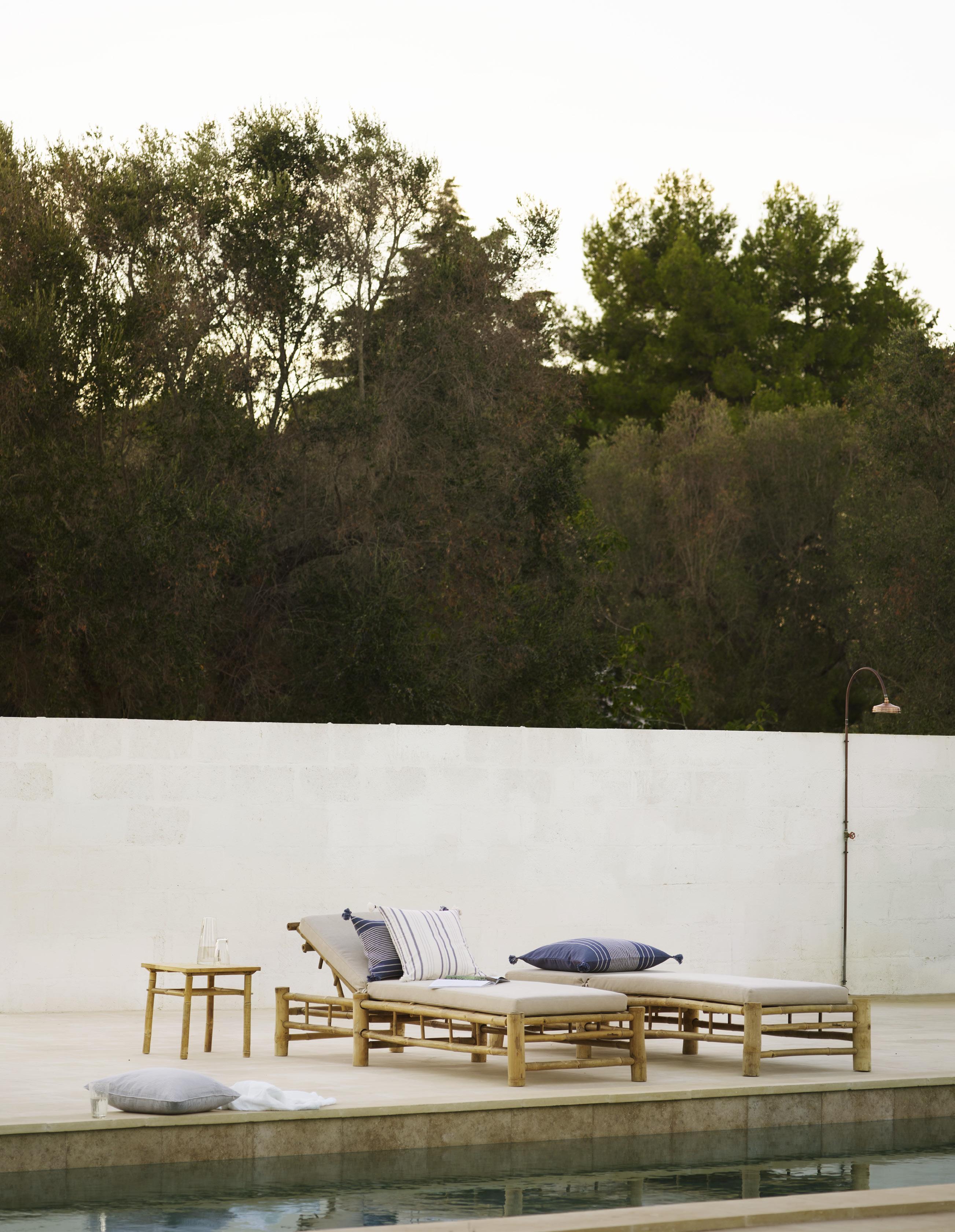 Bamboo sunbed w. seat cushion in cotton 80 x 210 x H 43 cm 2800-380 | 3360-455 | 7000-2