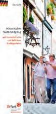 Zitadelle Petersberg 6 Petersbergführungen 9 Petersbergführungen für Kinder-, Schüler- und Jugendgruppen 14 Kinder-Werkstatt (Pädagogische Angebote) 15 Klosterkirche St. Peter & Paul 16 Stadtführungen 18 Klassische Stadtführungen 20 Stadtrundfahrten 22 Thematische Stadtrundgänge 24 Stadtrundgänge mit Erfurter Originalen 26 Erlebnistouren 32 Szenische Stadtgeschichten 34 Stadtrundgänge für Kinder-, Schüler- und Jugendgruppen 36 900 Jahre Jüdisches Leben und UNESCO Bewerbung (inkl. Führungen) 38 Martin Luther in Erfurt (inkl. Führungen) 42 Bachfamilie in Erfurt (inkl. Führungen) 46 Blumenstadt Erfurt (inkl. Führungen) 48 Thüringen-Touren (inkl. Führungen) 52 Traditionsunternehmen 54 Kulinarisches 56 Pauschalangebote 64 Erfurt-Card 67 Sehenswürdigkeiten 68 Ausstellungen / Museen 72 Kultur 78 Veranstaltungen 80 Aktiv & Wellness 82 Einkaufserlebnis 86 Erfurt-Gutschein 87 Verkehrsanbindung 88 Öffentlicher Nahverkehr 89 Parken 90 Broschüren 92 Kontakt 94