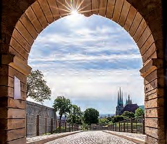 Über der Erfurter Altstadt erhebt sich die Zitadelle Petersberg – eine der größten und einzige weitgehend erhaltene barocke Stadtfestung Mitteleuropas. Sternenförmig angelegt, galt sie als die modernste Anlage der damaligen Zeit und als uneinnehmbar. Seit 1990 wird sie mit viel Liebe zum Detail und großem Aufwand rekonstruiert.