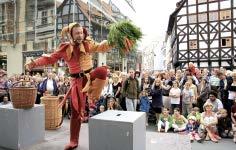 Gemeinsam mit den Mitarbeiterinnen des Jungen Theaters können Familien einen Blick hinter die Kulissen der DomStufen-Festspiele werfen und im bunten Theatergewusel den Mitwirkenden über die Schulter schauen.