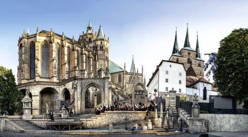 Die DomStufen-Festspiele in Erfurt sind aus dem Veranstaltungskalender der Thüringischen Landeshauptstadt nicht mehr wegzudenken. Jeden Sommer verwandelt das Theater Erfurt die 70 Stufen der historischen Kulisse aus Dom und Severikirche in eine opulente Opern- oder Musicalbühne und hat damit bisher hunderttausende Besucher erreicht. Längst kommen die Gäste nicht mehr nur aus Deutschland, sondern auch aus vielen europäischen Nachbarländern, den USA, Brasilien, China und Australien. Das verwundert nicht, liegt doch das Festspiel-Areal inmitten der wunderschönen Erfurter Altstadt, die im Sommer mediterranes Flair versprüht und mit vielen Cafés und Restaurants auch kulinarisch einiges zu bieten hat. Die hohe Nachfrage spricht für die künstlerischen Leistungen des Theaters Erfurt und hat in den vergangenen Jahren zu einer Erweiterung des Platzangebotes auf der Zuschauertribüne und zu einer Ausweitung der Aufführungstermine geführt. Von Beginn an werden die DomStufen-Festspiele von der Sparkassen-Finanzgruppe Hessen-Thüringen als Generalsponsor gefördert und begleitet. Lesen Sie mehr auf Seite 6.