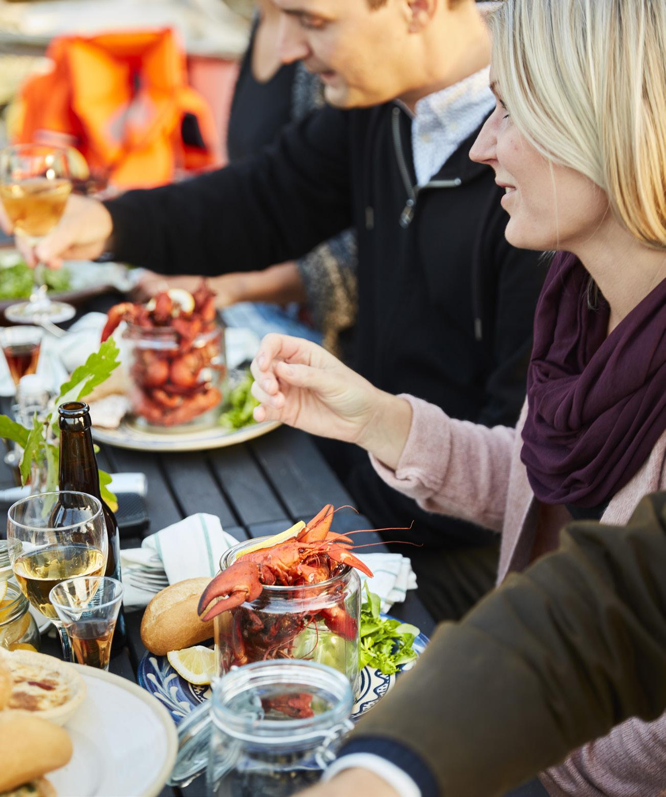 1 Ein traditionelles Sommerfest in Schweden ist einer gastronomischen Delikatesse gewidmet den Flusskrebsen; 2 Zubereitung von Speisen im Freien; 3 Gastronomie ist ein wichtiges Reisemotiv für immer mehr Touristen.