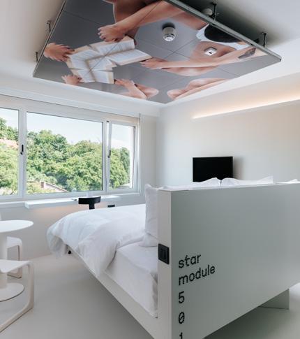 Stellar, Star, Standard oder Balcony Module? Welchen Modul- oder Zimmertyp Sie auch wählen - alle 48 sind im futuristischen Stil eingerichtet und alle bieten erst k lassigen Komfort und verfügen über eine hochwertige Aus sta ttung. Die "Decken fresken" und das Erlebnis der Schwere losigkeit sind inbegriffen. Falls Sie jedoch ein geräumigeres Zimmer mit einem Doppel bett und einem Wohn zimmer möch ten, wählen Sie Stellar. Für zwei Gäste ist das Star Module ideal, während für Allein reisende das Einzel zimmer Standard perfekt ist. Das Balcony Zimmer mit Loggia, das einen Blick auf die Stadt bietet, wird Reisende begeistern, die Entspannung mit malerischen Aus blicken suchen. D er