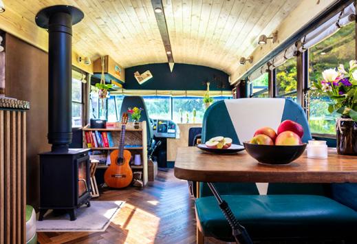When an American school bus arrives in Sussex in southeastern England and is transformed to a cozy eco-friendly haven, where you can stay any time of the year, it is a unique glamping experience. The handmade interior, which retained original elements, modern technology, natural materials, solar energy, sheep's