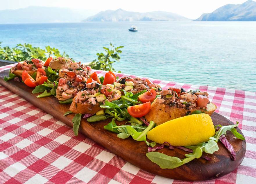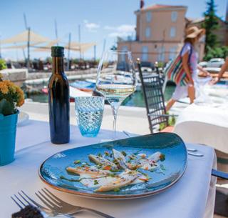 gastronomy are taken by the renowned Kvarner shrimp (which is known as the most delicious in the world!), island lamb (which was, according to legend, served at Emperor Nero's feasts in Rome), fresh fish, Krk prosciutto (the first Croatian product protected by an EU geographical indication), delicious honey, sheep's milk cheese, handmade šurlice pasta, olive oil - liquid gold that enhances many dishes (also protected by a geographical indication), wild aromatic island herbs, followed by homegrown, seasonal ingredients and wine - the superb Vrbnička Žlahtina. The supreme awardwinning white wine is made with white Žlahtina grapes, which gives the best results in the Vrbnik Field on the island and is protected by a geographical origin trademark. Refreshing Žlahtina pairs excellently with Mediterranean dishes, as does Valomet, a unique sea sparkling wine that is made with the same sort and
