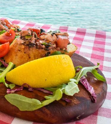 aged for months at the bottom of the sea. Once it sees daylight, it delights all with its flavor and quality, and it is also unique for the natural design of its bottle with deposits of coral and seashells. Valomet is also a fantastic souvenir to take with you from the island, as is the book The Island of KRK - 50 delicacies of the Golden Island . The book offers recipes to prepare traditional island dishes in a modern manner so in it, amongst other things, you will discover how to make brodet with polenta, presnac (a traditional island dessert), or šurlice handmade pasta with Krk prosciutto and arugula. It is translated into English, German, and Italian and can be purchased at the Krk Island Tourist Board, where you can also find out a lot of information to make your stay on the island as pleasant as possible.