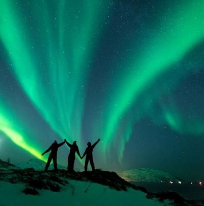 1 The dancing polar lights above the island of Aldra in Norway; 2 There are many polar light watching excursions organized in Norway; 3 The spectacular and photogenic Aurora Borealis in Sweden attracts many photographers.
