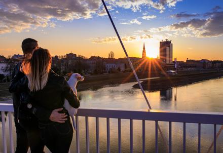1 A view of the Drava; 2 The city center; 3 Osijek's Tvrđa; 4 A ride down the Drava; 5 Walking through a city park; 6 A cycling tour; 7 A bridge on the Drava; 8 Advent in Osijek.