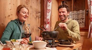 Gemütlicher Abend mit DJ-Sound Fondue, Hüttenspezialitäten und À-la-carte-Speisen werden serviert.