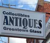 Greentown Antique Mall has more than 3600 sq. ft. of antiques & collectibles. There is a wide selection of Early American Pattern Glass (including Greentown Glass, Fenton Glass, Depression Glass & Art Glass), St. Clair lamps, paperweights, and collectibles, marbles, vintage toys, jewelry, coins, primitive, pottery, military items and so much more! Open all year (except major holidays), Tues - Sat 10a.m.-4p.m.