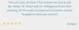 Greentown Animal Hospital provides compassionate, expert veterinary care for pets in every stage of life. Locally trusted and owned, we offer wellness exams, diagnostics, surgery and urgent care. Our dedicated team treats every pet like family - because your animals deserve the very best. Proudly serving Greentown with heart and home-town values. Check out more on our staff at greentownvet.com!