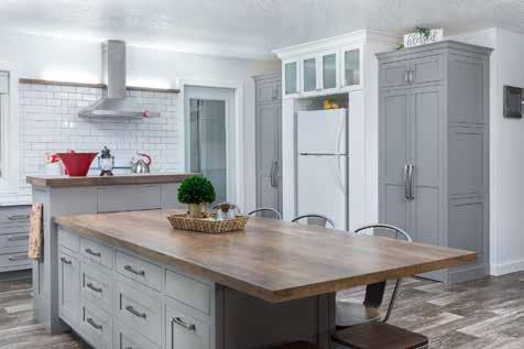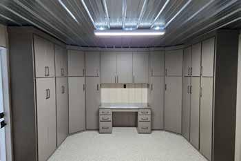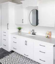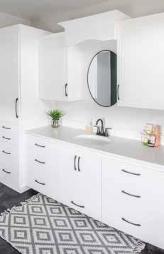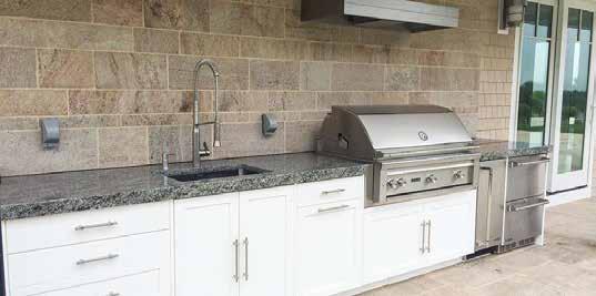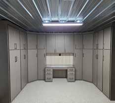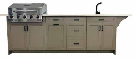 The polymer material is a nonporous recycled plastic that is water-, UV-, mold- and scratchresistant, making the cabinets a great fit for exterior spaces such as decks, garages and poolside settings. But Steven emphasizes that they can also fit seamlessly in interior settings, like kitchens, bathrooms, laundry rooms, family rooms, basements, offices and industrial spaces. Commercial applications can include healthcare settings, schools and fabrication facilities, among others.
