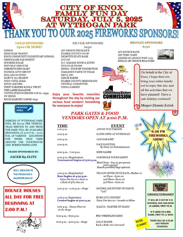 Fourth of July Parade, 2 p.m. followed by Family Fun Day and Fireworks Show at Wythogan Park.
