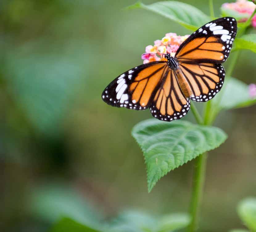 Monarch butterflies are unmistakable, with a wing span of about ten centimetres. They are large butterflies with bright orange wings edged with a black border with white spots and a latticework of black veining. They are native to North America and are renowned for their annual migration travelling between two and four thousand kilometres from the high mountain forests of central Mexico to the north-eastern United States or south-east Canada.