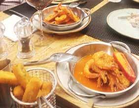 Tapas d’Alma is in a great location behind the bus station. It has an array of outside seating –gleaming white tables and chairs– to enjoy al fresco dining. Close to the town centre and easy to find, it is sure to become a popular venue for locals and tourists alike. The new interior is ‘quirky’, in the nicest possible way, and comfortable. The staff gave a warm welcome as we arrived for dinner. We perused the wine list first and were pleased to see Douro white wines from 12€ a bottle and reds from 13€. The house red and white were both very good indeed! Couvert range from 1.70€ for the olive and lupine marinade and the paté of the day was only 2.50€. The choices for mains are extensive, with too many to cover here. I had the ‘broken eggs,
