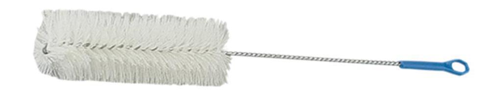 Grand écouvillon de 49 cm de long composé d’une brosse lave bouteille en nylon de 7 cm de diamètre déployée, semi-rigide, permettant de l’introduire dans tous les goulots de bouteilles (jus, vin, bière. . . ). Poignée en plastique avec aneau et crochet de suspension de l’écouvillon. Axe en fil de fer tressé. Brosse de 20 cm de long. Longueur de la tige jusqu’à la poignée : 40 cm. Long. 49 cm - Ø 7 cm - Poids. 60 g