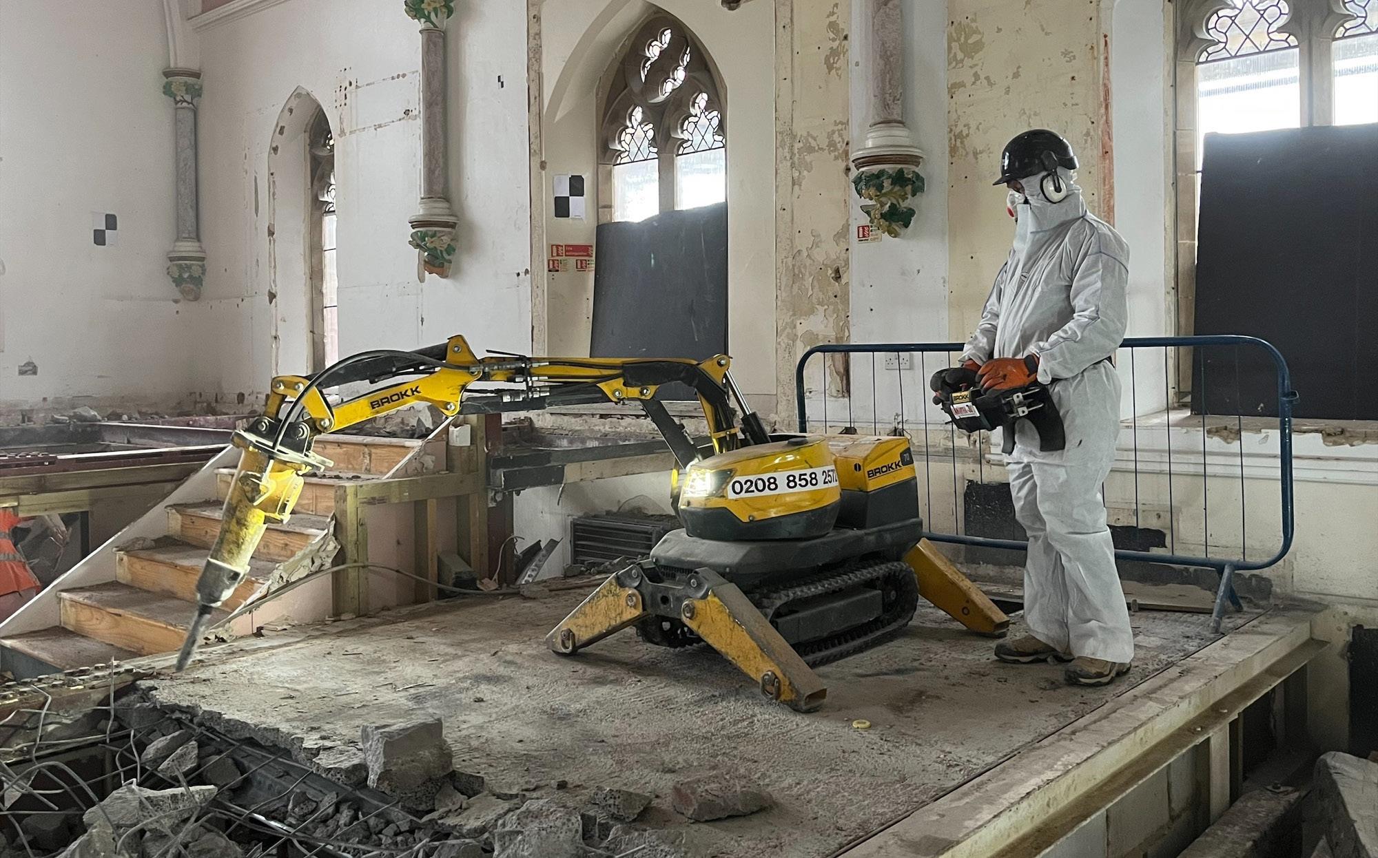 The floor was strengthened and now includes concrete foundations for a new steel frame, staircase and entrance lobby.