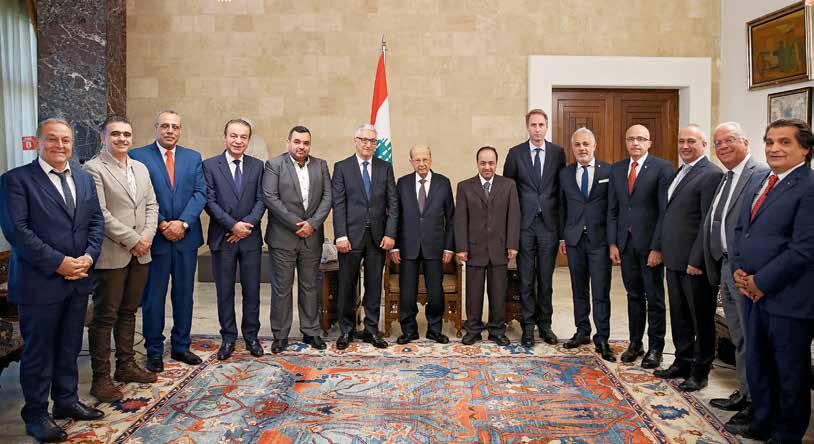 THE PRESIDENT OF THE REPUBLIC MICHEL AOUN, RECEIvING THE PRESIDENTS OF THE INTERNATIONAL DENTAL DELEGATIONS.