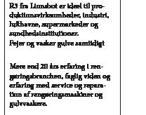 lobbyer, showrooms og andre krævende indretninger af lokaler på hoteller, i kontorbygninger eller i detailhandlen,« forklarer Dr. Henning Hayn, General Manager hos Nexaro. »Den opfylder de højeste krav, der stilles til kommerciel rengøring. Den er samtidig et ideelt supplement til Nexaro NR 1500, som fortsat er den optimale løsning til mindre områder og særlige anven -
