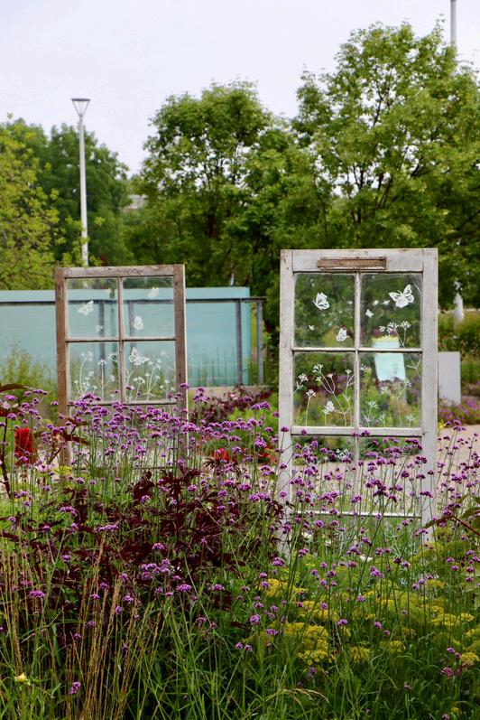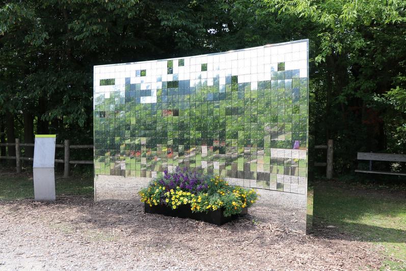 This summer, nature helped us design our arrival garden beds through “rewilding,” a cost-effective strategy combining re-seeded plants plus new plants, edited for impact. Antiqued, mirrored windows adorned with floral motifs symbolize TBG’s reflection on its 70-year anniversary as a public garden.