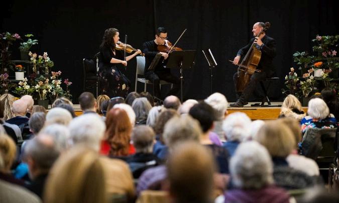 The Floral Hall is our largest space available The auditorium features a soaring 20foot ceiling with a series of skylights, beautiful stacked stone walls, a stage with a podium, LCD projector with a screen, and a private change room/green room On the south wall, two sets of French doors open onto the private courtyard