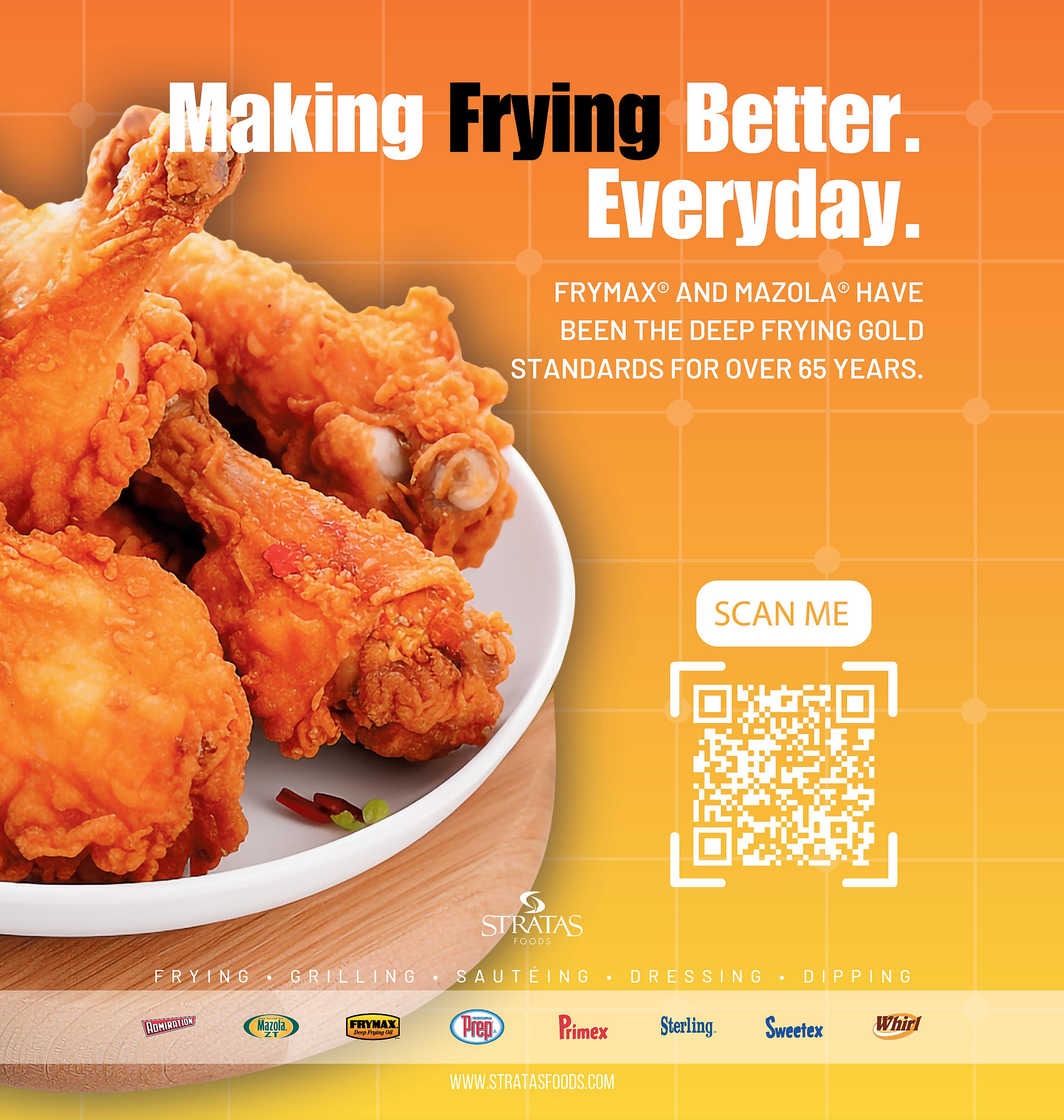 One of the biggest challenges for operators is maintaining SKU efficiency while offering variety. Chef Gatto added, “You don’t want singlepurpose SKUs cluttering your kitchen. The goal is to have multiple applications across all dayparts. A good example is using Sweet Baby Ray’s as both a traditional sauce and a base for dressings or marinades.”