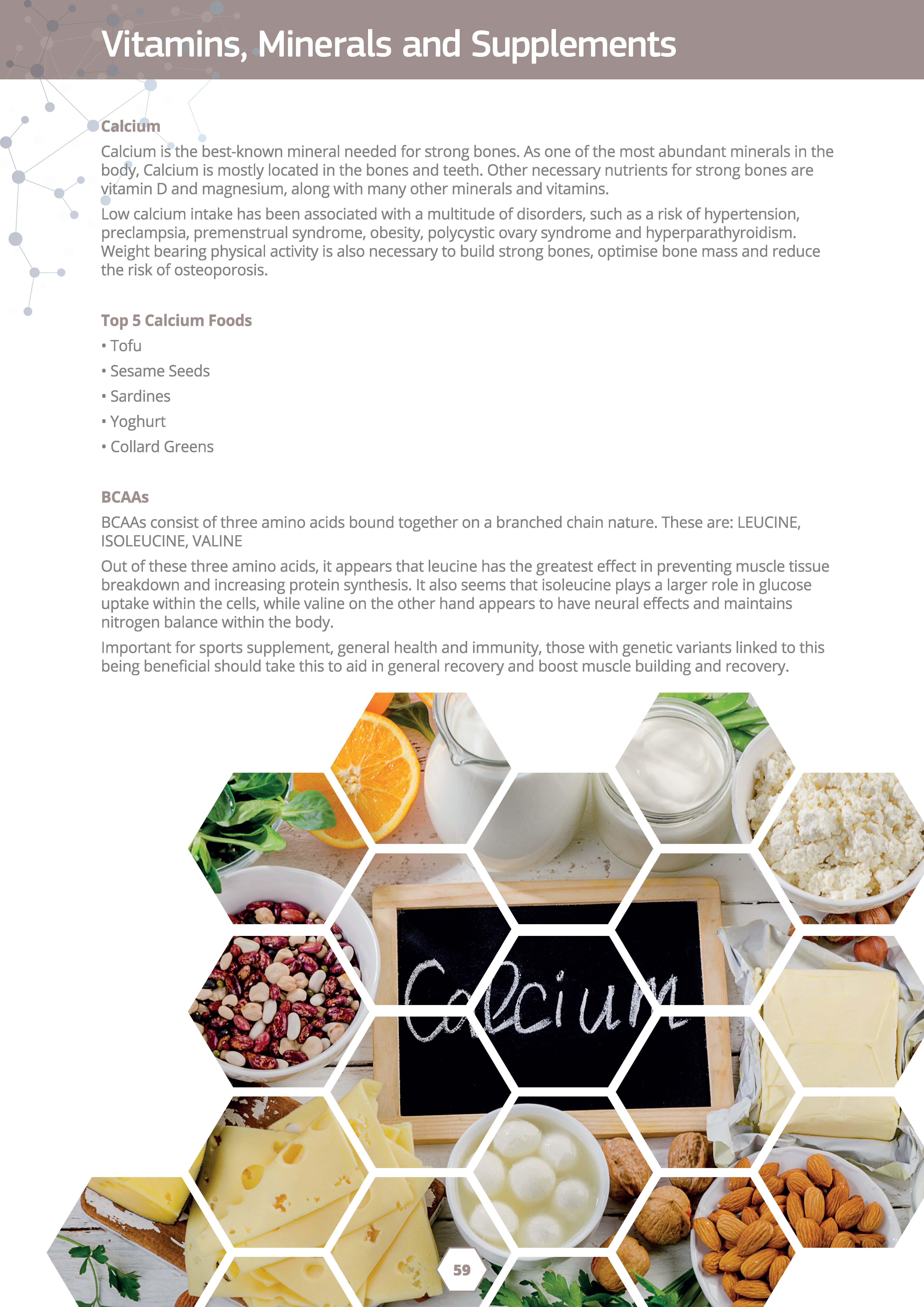 Provide the correct energy and recovery through a balanced diet including necessary vitamin, minerals and supplements linked to their genetic outcomes.