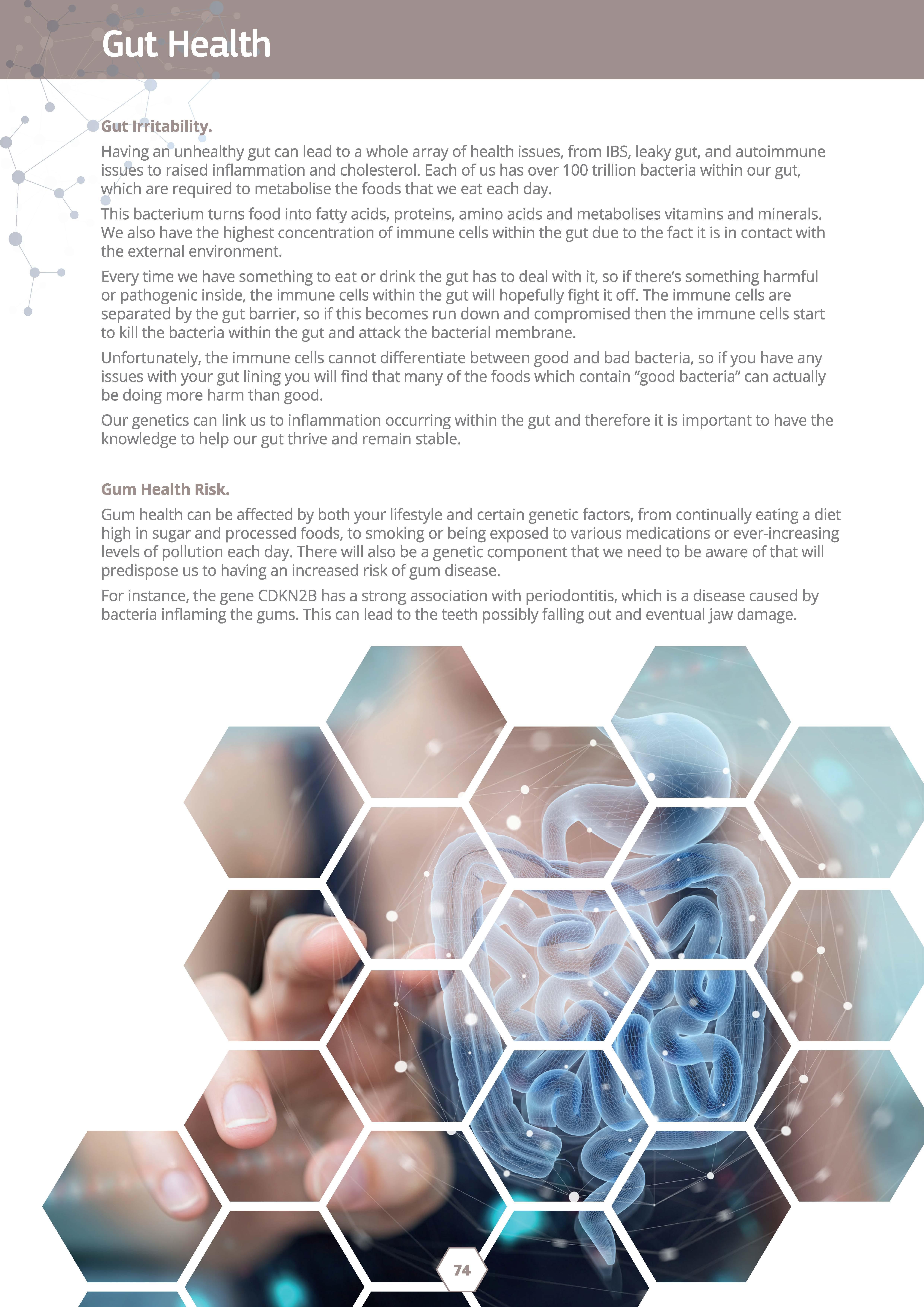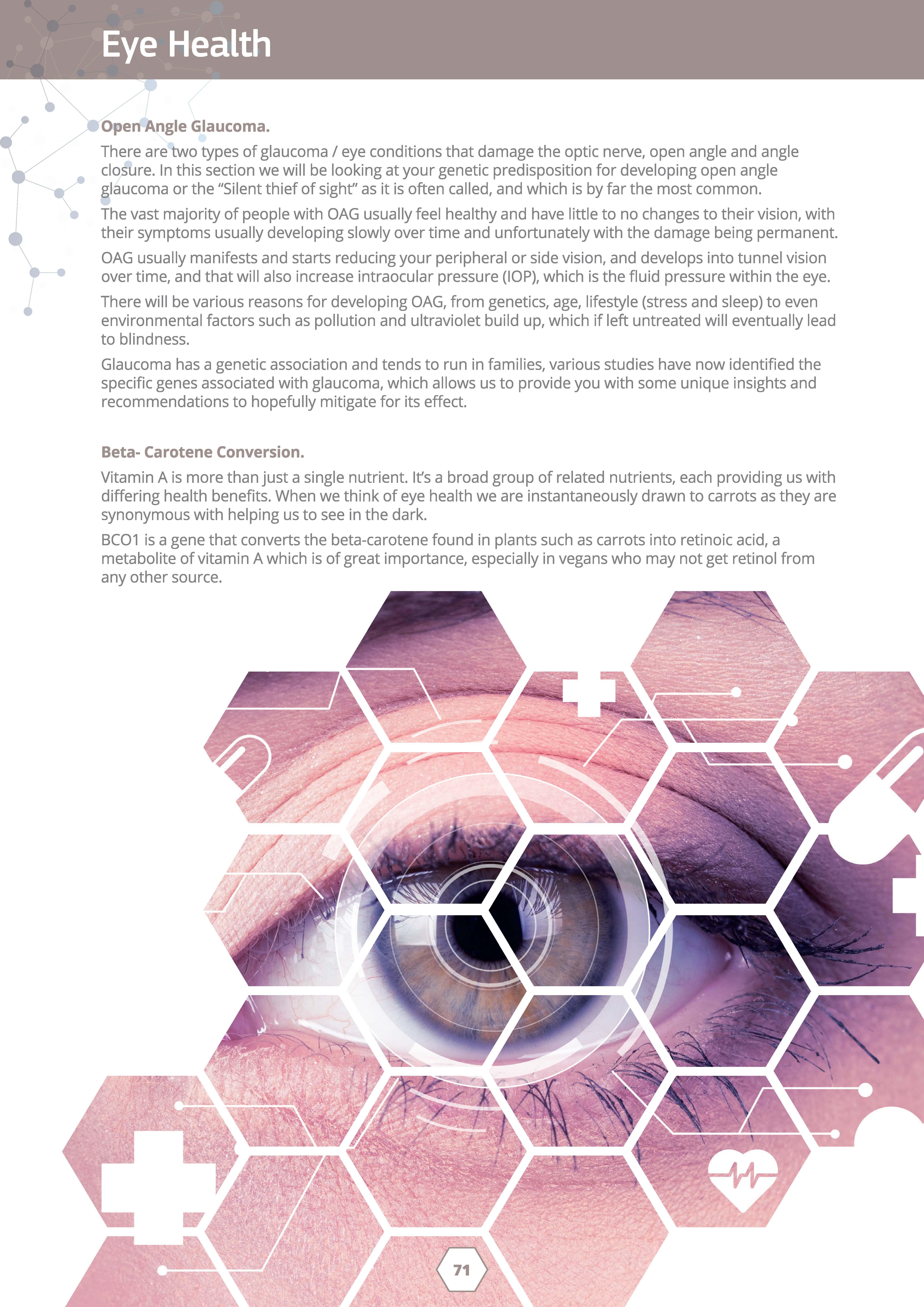 that nature, as well as nurture, are both important factors that contribute towards developing a particular ailment. Once you understand your genetic risk and predisposition you can put in place certain lifestyle changes that will hopefully mitigate • some of these risk factors.