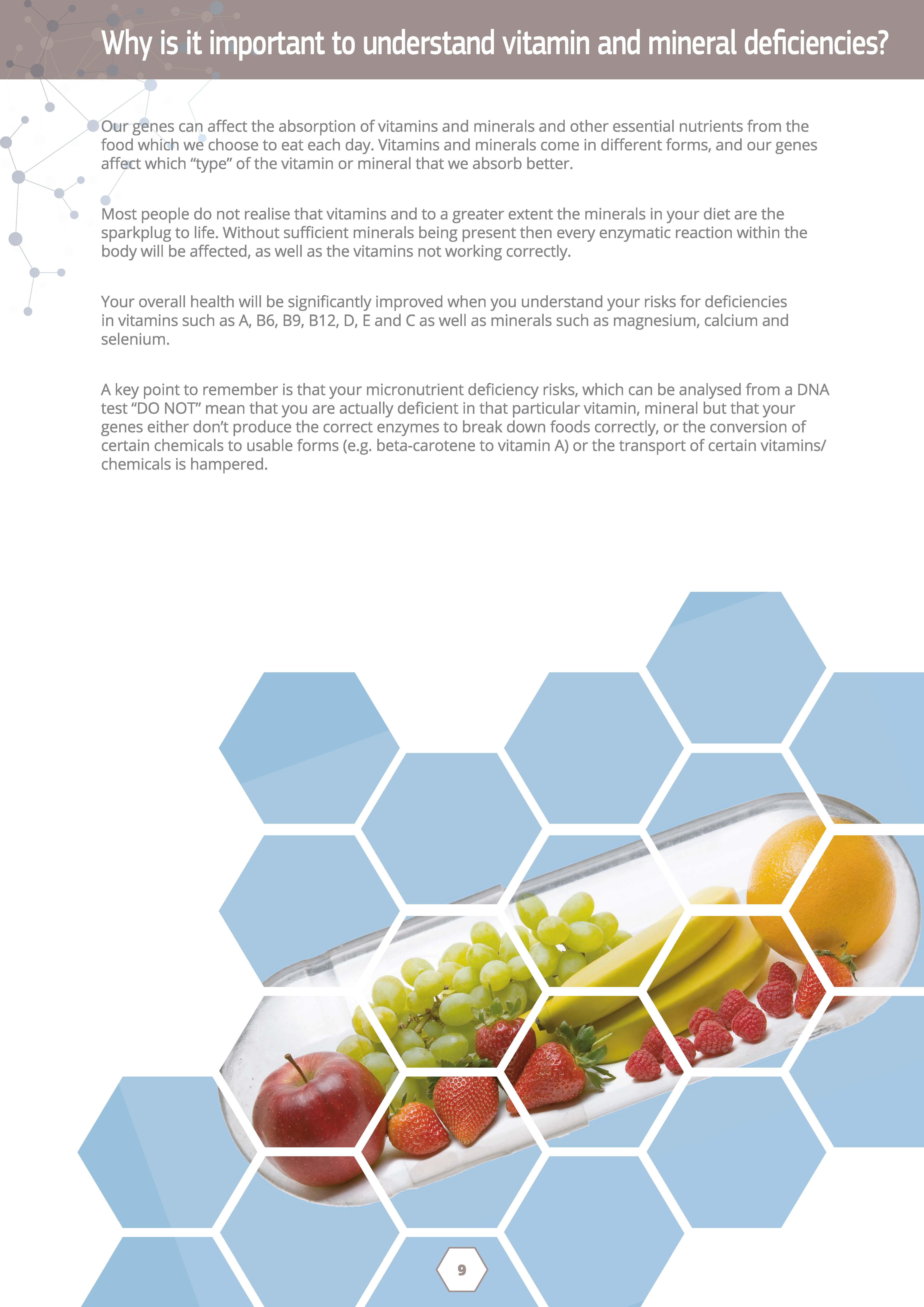 We can briefly now go through a few examples, so that you have a better understanding about how certain nutrients can be extremely important to your training requirements as well as your overall health, and then how specific genes will affect your ability to absorb, transport or convert each nutrient.