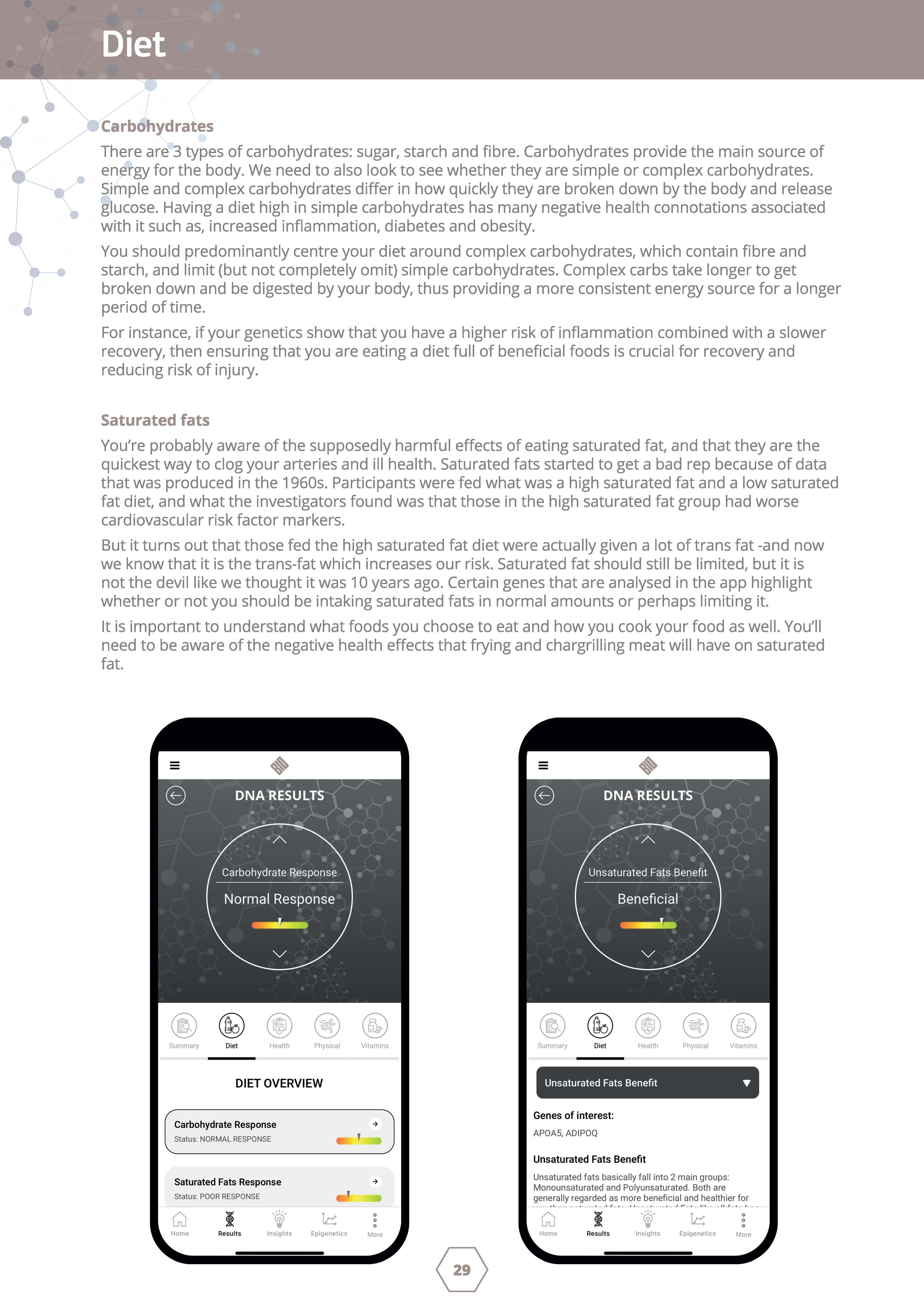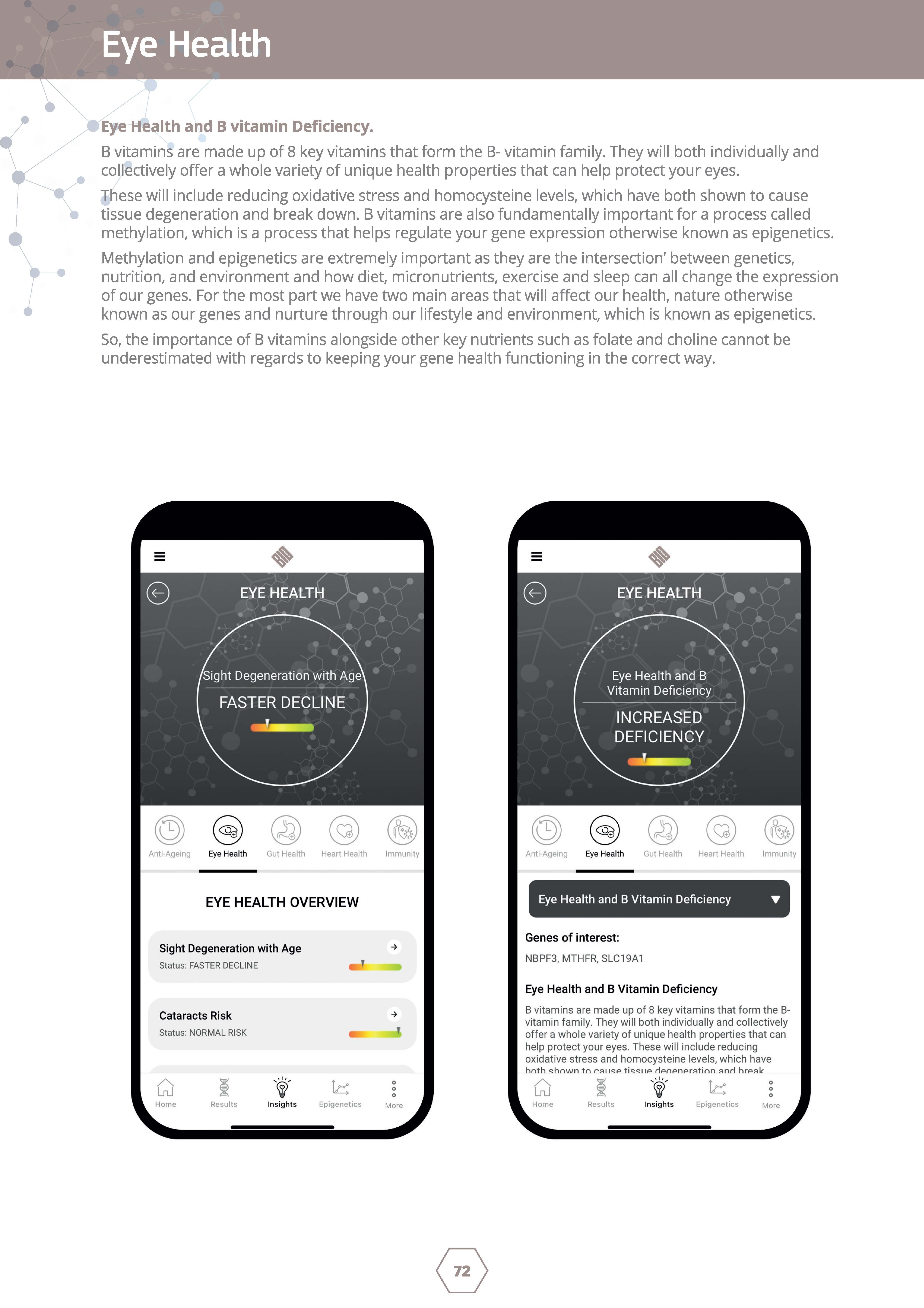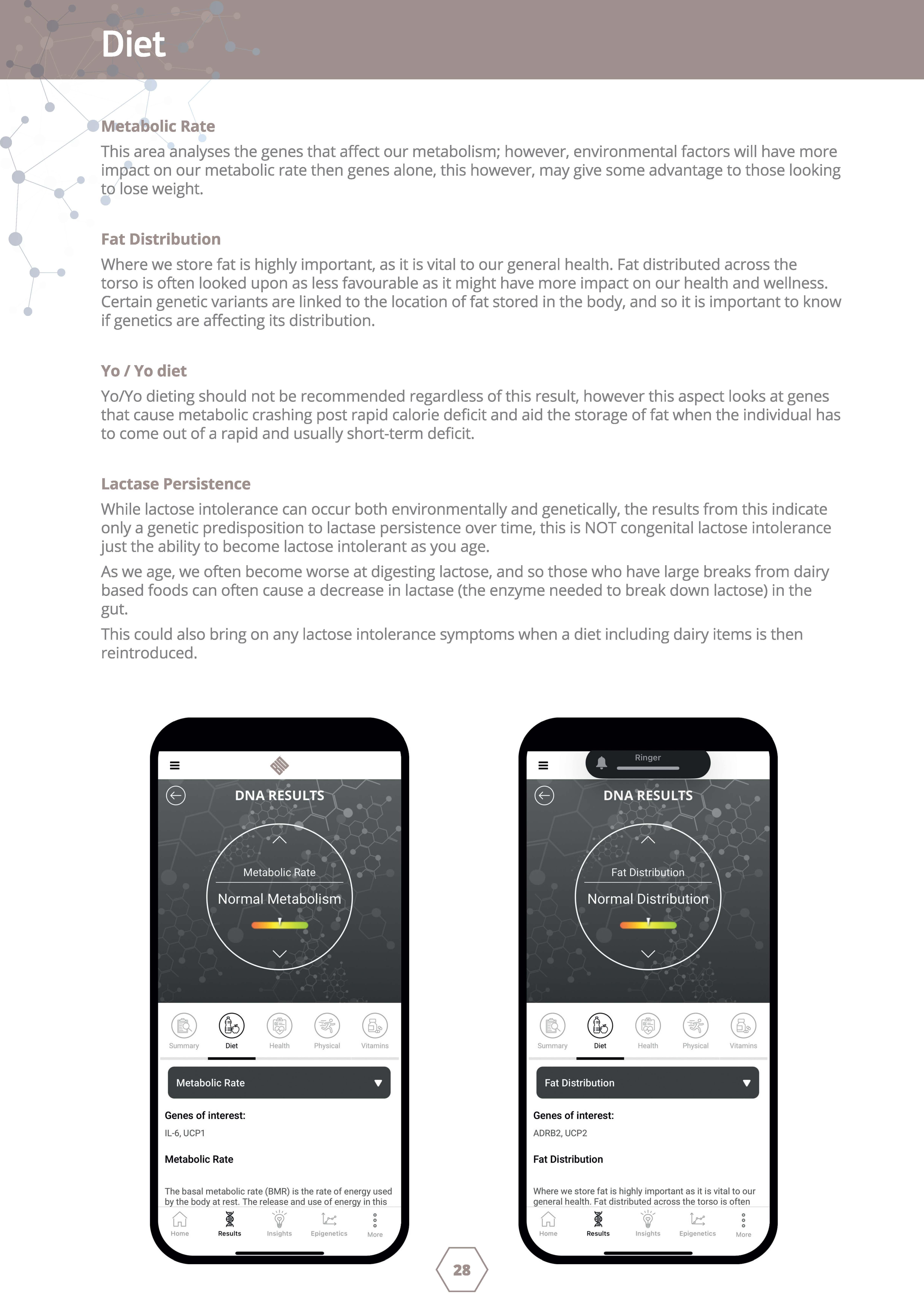 • It gives you a visual insight to show the benefits of exercise and correct nutrition aligned to your genetic makeup