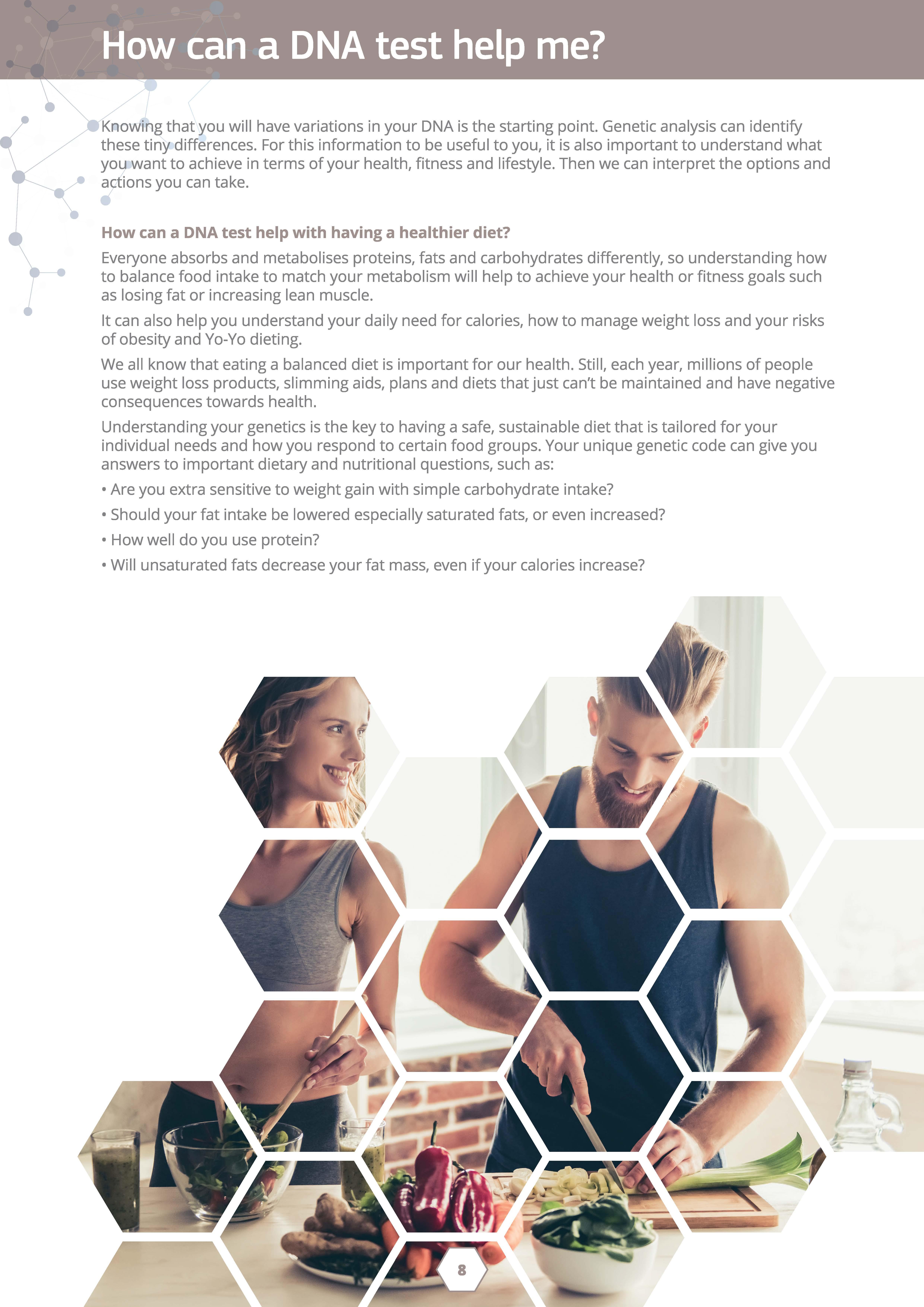 The DNA Diet calculates a unique diet aligned to both your DNA, food preferences such as vegan, gluten or dairy free as well as your chosen goal.