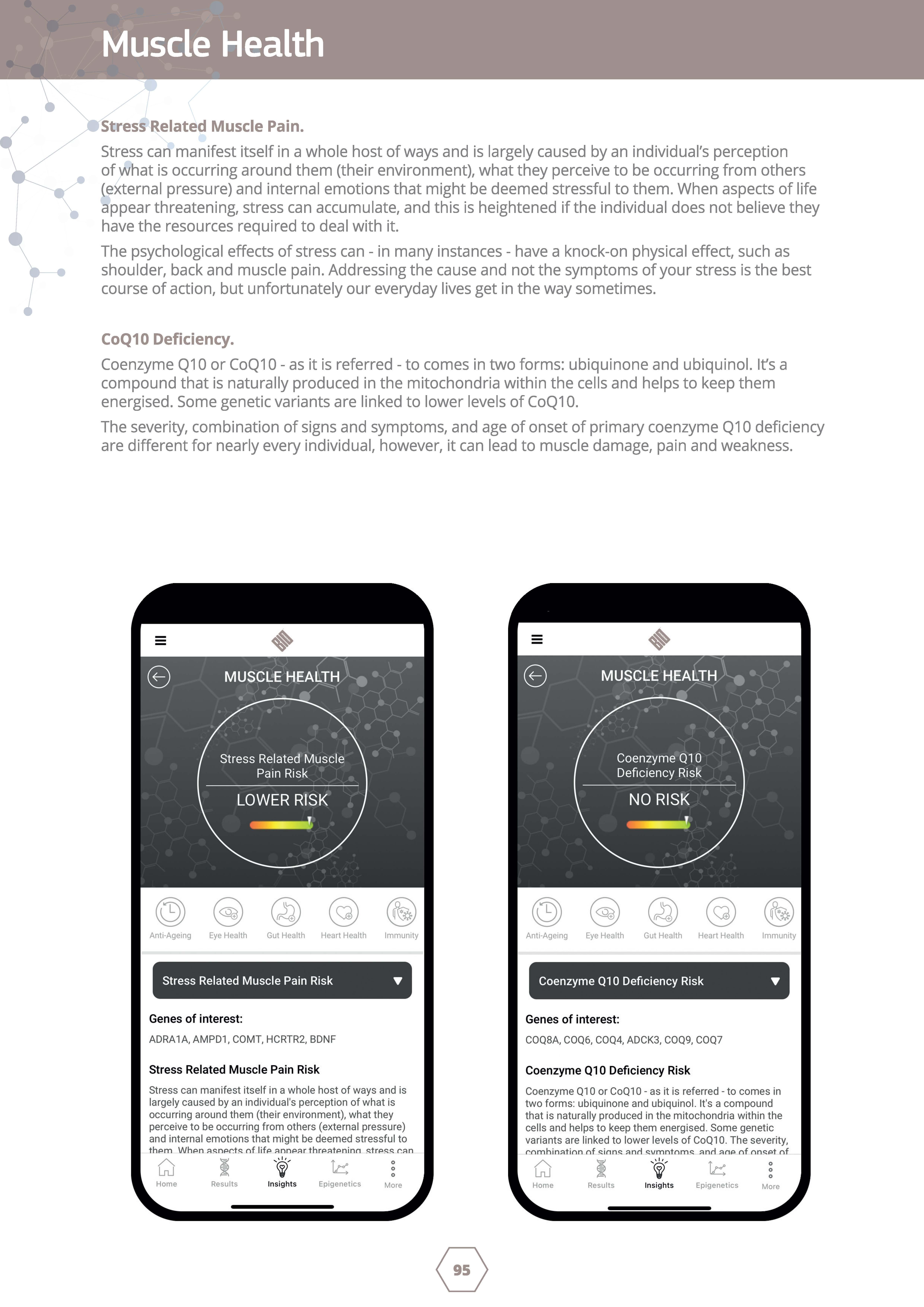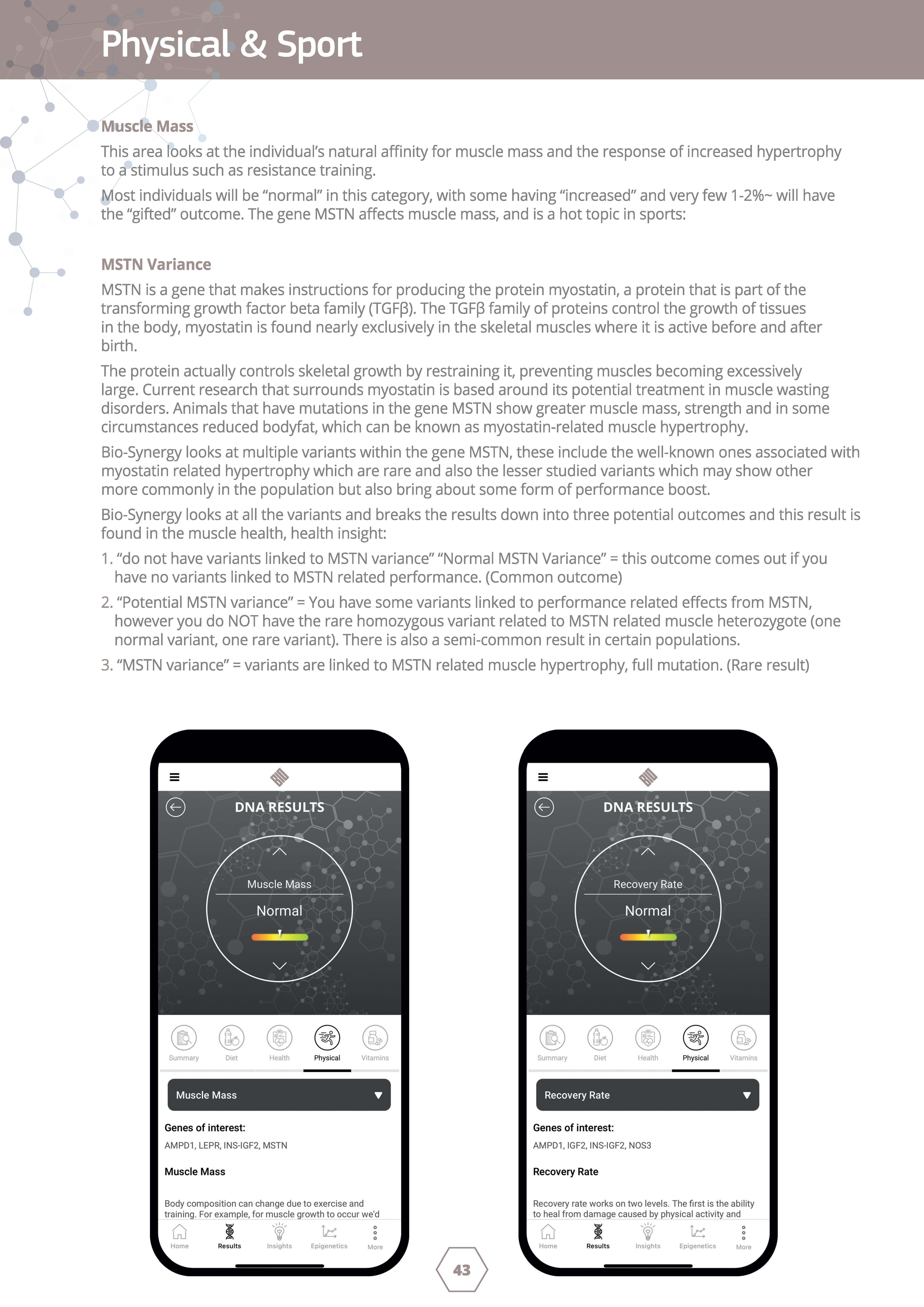 Bio-Synergy looks at all the variants and breaks the results down into three potential outcomes and this result is found in the muscle health, health insight: