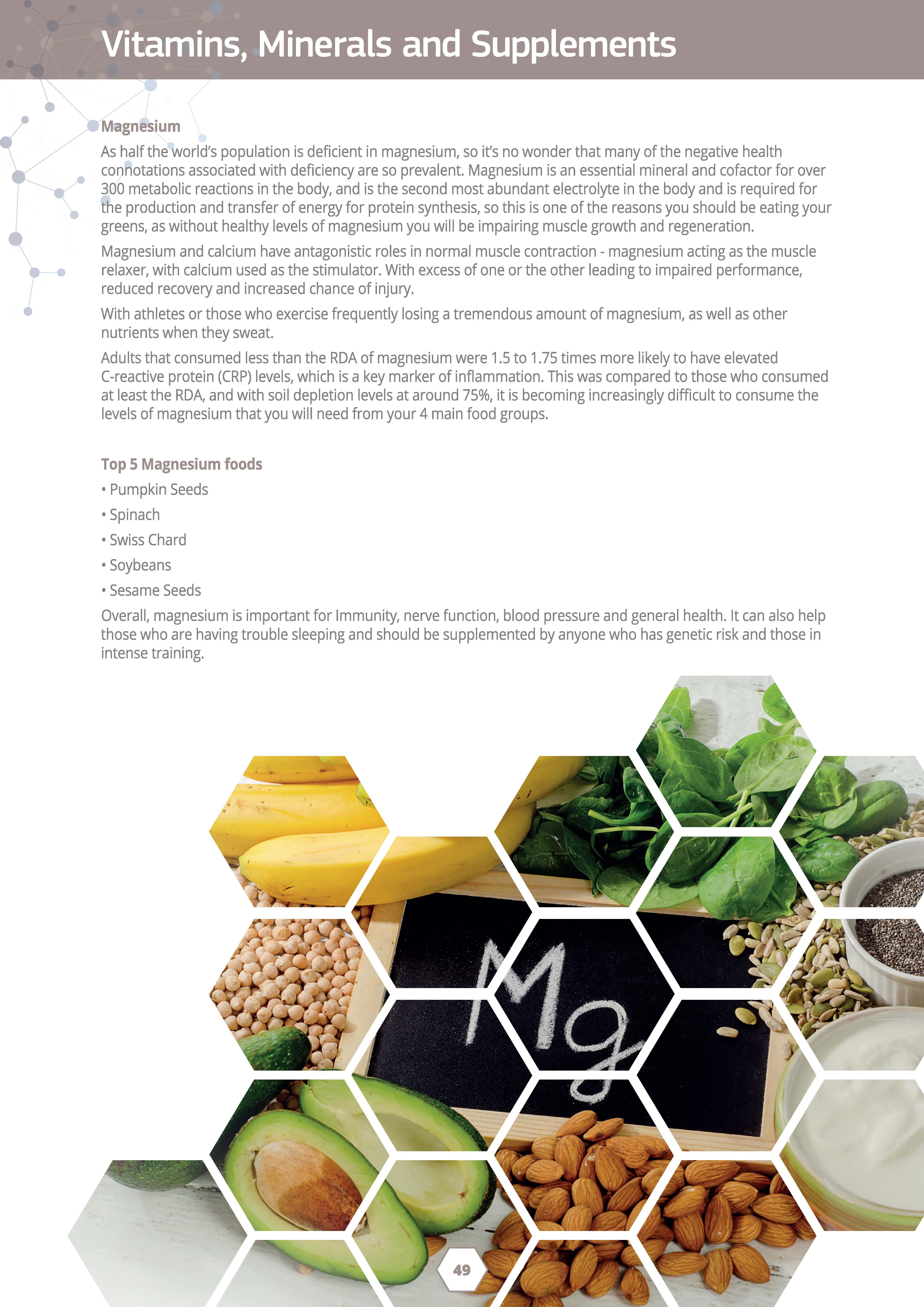 • It plays a pivotal role in exercise-induced muscle damage and recovery, as well as being crucial for the absorption of calcium into the bones. It's also essential for optimal hormone regulation and function, which obviously goes hand in hand with testosterone levels and improvements to strength, speed, • power and recovery.