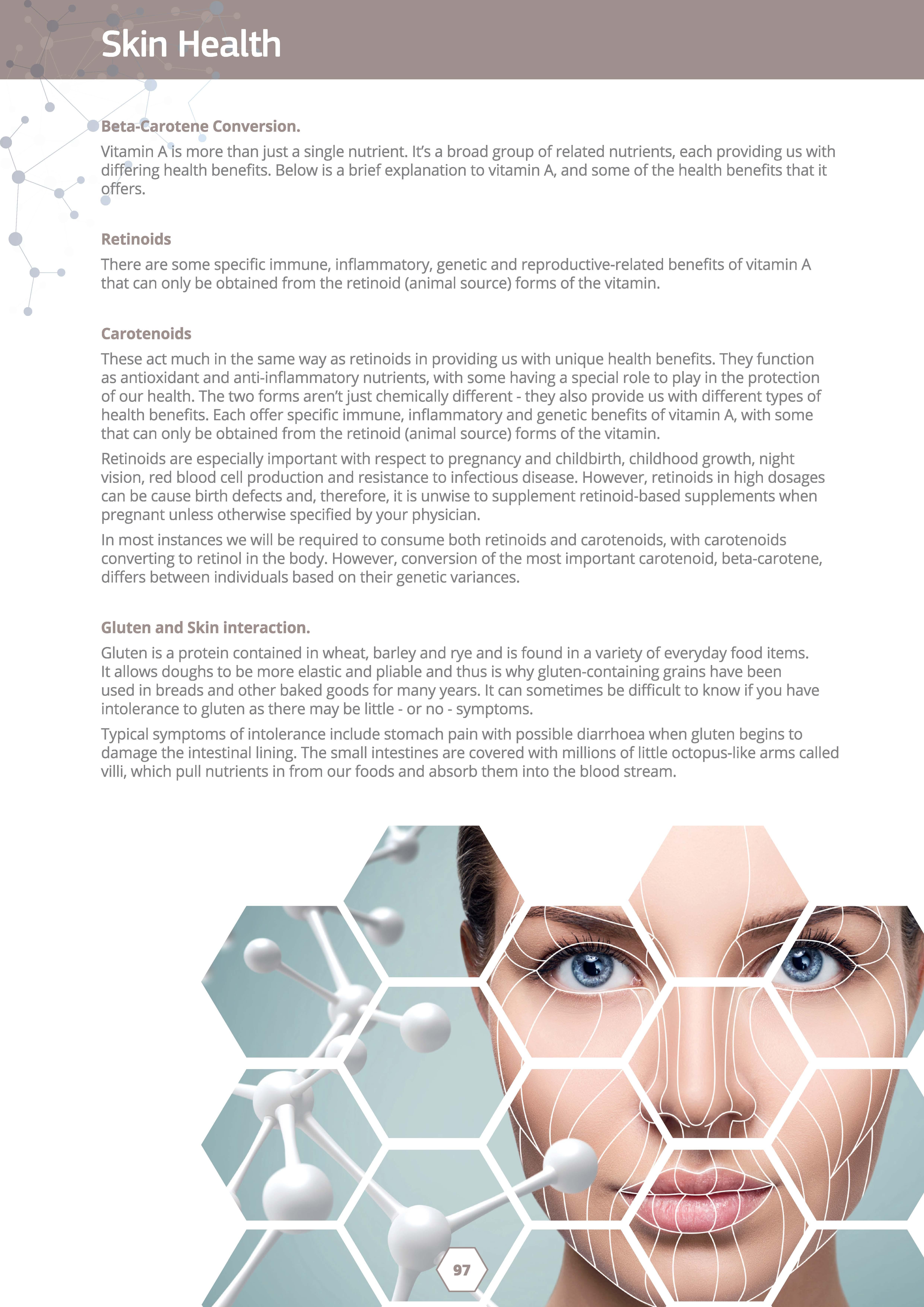 Vitamin A is more than just a single nutrient, but a broad group of related nutrients, each providing us with differing health benefits. Vitamin A is also called "anti-infective" vitamin and many of the body's defences against infection depend on an adequate supply.