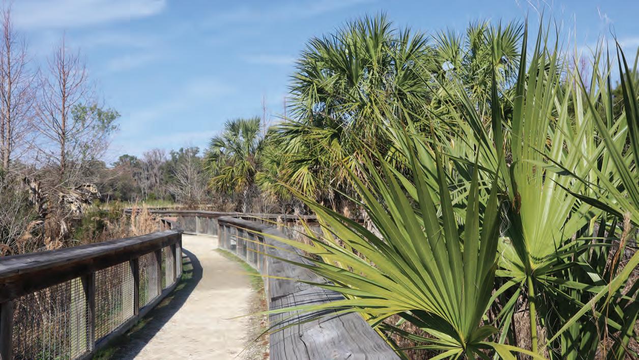 of the beautiful habitats that house abundant wildlife. Try a calm stroll or an entire hike through trails such as the Sweetwater Wetlands Park or the GainesvilleHawthorne State Park Trail. These are among multiple trails that offer scenic views for miles. You will see biodiversity at every corner, with different species of plants and animals across the trails. If you are lucky, you might even see a gator poke its head out if you look out from the pavilion at the start of the Sweetwater Wetlands Park trail. Just make sure you bring some water, sunscreen, and light attire if you plan to hike your way through.