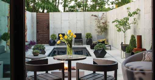 Consider color. When it comes to a color palette for your outdoor spaces, Courtney says black, white and dark brown as most popular for screen frames. Howell says he’s seeing homeowners leaning into a natural, organic look with a focus on warm, earthy tones, like soft beige, sandy cream and warmer grays. “Finishes like honed and leathered stone are really popular right now for adding depth and character, especially on walls and fire features,” he adds. &