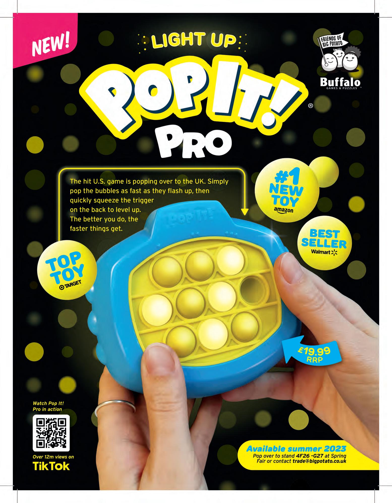 Bubble-popping game Pop It! Pro has been a hit since launching in the US last year and will be available from Big Potato in the UK to order in summer 2023. The gameplay is simple and addictive, with three modes, including a multiplayer battle and a solo blitz challenge – think Whack-a-Mole meets bubble popping. Players pop the bubbles as soon as they light up, then squeeze the button on the back to level up. The difficulty ramps up gently, so there’s no need to be a master bubble popper straight away.